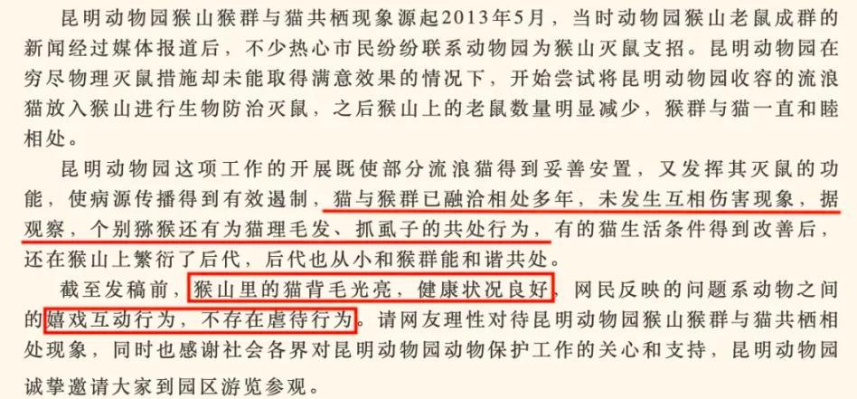 事件曝光後得到了廣泛的關注。只不過大家解救貓咪心切,都不及昆明動物園的一則聲明。