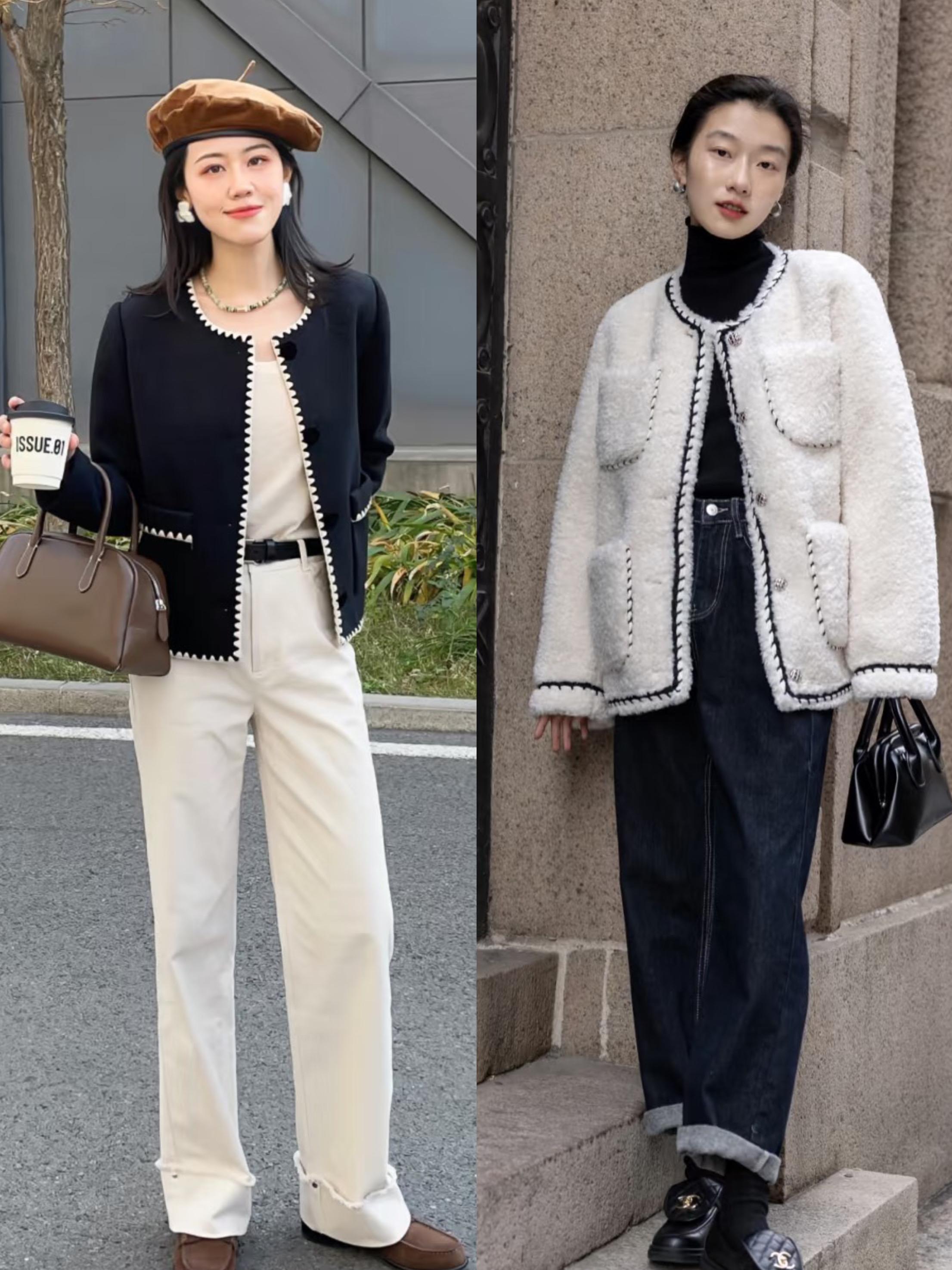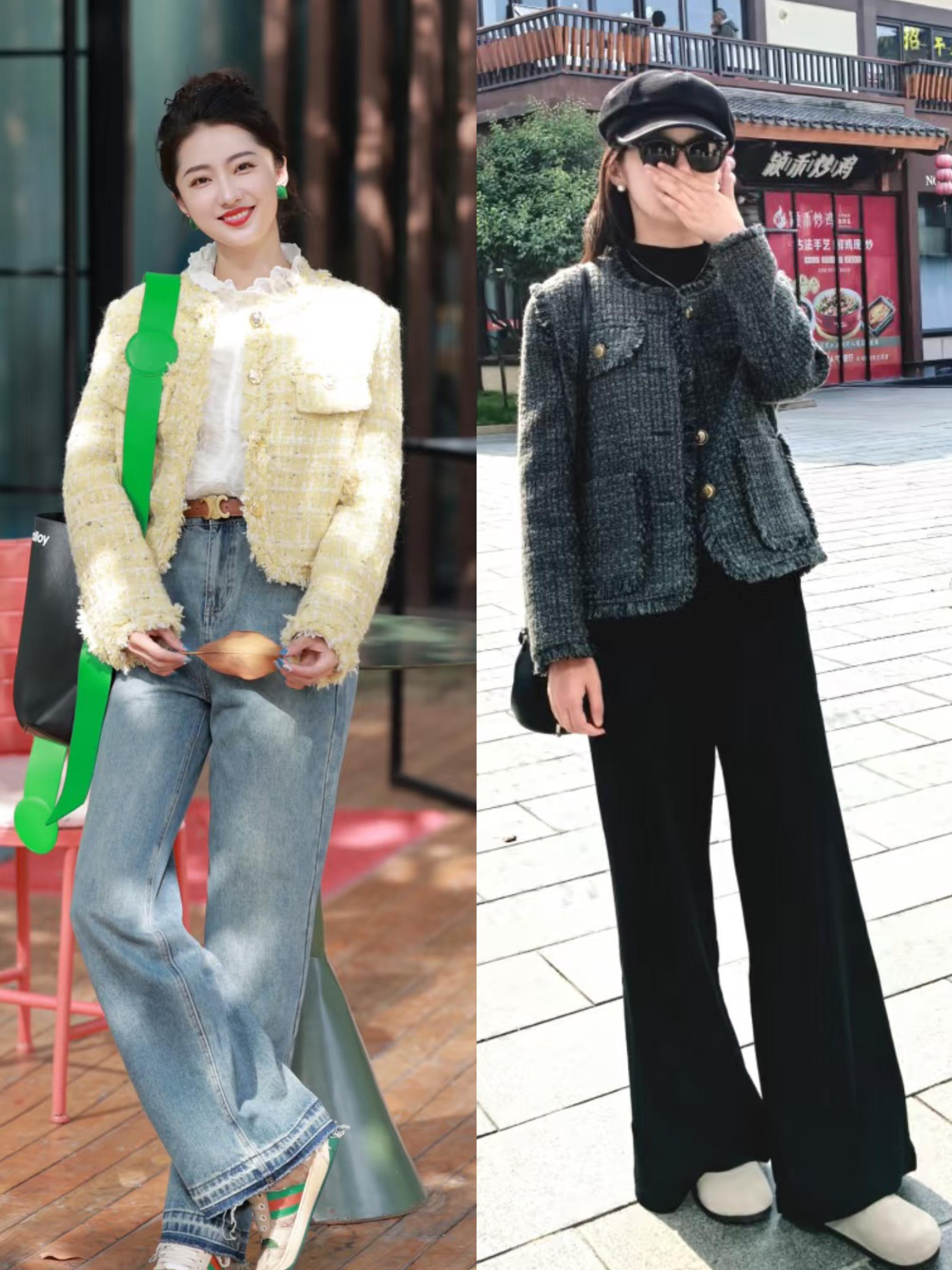 幾十塊的小香風、面料質感比較廉價、一看就透着土氣感。所以我們在選擇小香風外套的時候,首先就應該拒絕廉價面料,尤其是扎人的面料,因爲舒適纔是更時髦的前提。