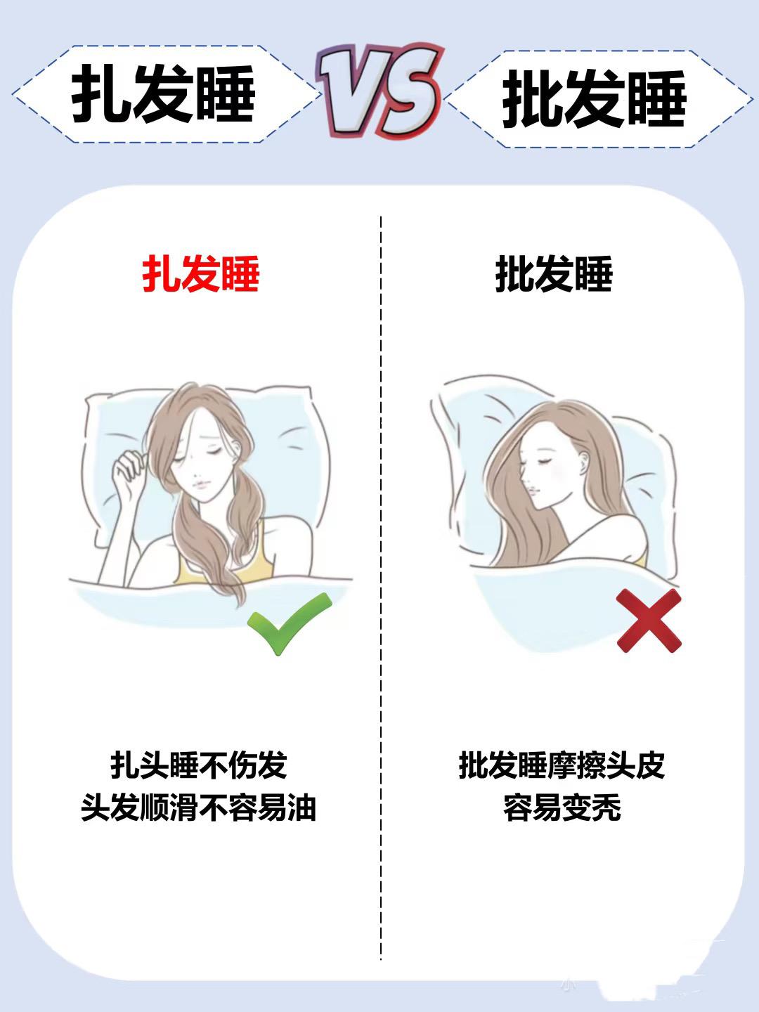 2、扎着頭髮睡覺、不要披着頭髮睡覺