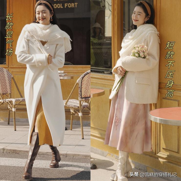 推薦大家選擇冬季外套的時候,避開那些過長的款式,容易顯得人邋遢和無型。推薦短款的設計,可以營造出流暢的線條感,有效地顯得腿部線條更長。另外,對於露出腳踝或者小腿線條的長度也可以多穿,能夠自然而然的擋住我們不完美的身形曲線,同時又可以爲我們的造型增添一份優雅與從容。
