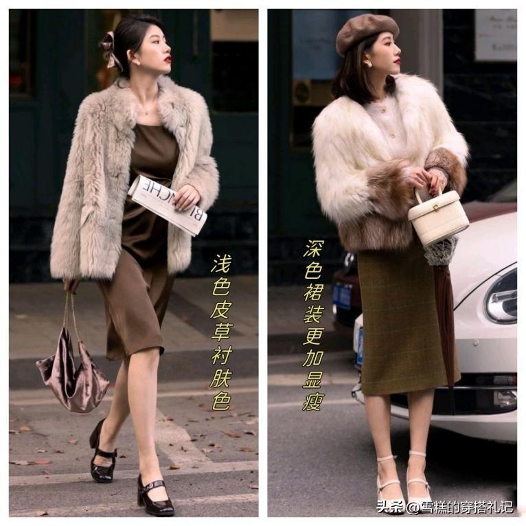 冬季保暖的外套,比起羽絨服這種比較爛大街的單品,我們可以多多嘗試皮草。能夠輕鬆爲我們的造型增加貴氣感,同時爲了避免臃腫狀態,可以將修身的裙裝與之搭配在一起。這樣的穿搭方式可以明顯修飾我們的身形線條,既能夠遮肉又能顯瘦,同時我們的身姿也會顯得更加優雅動人。