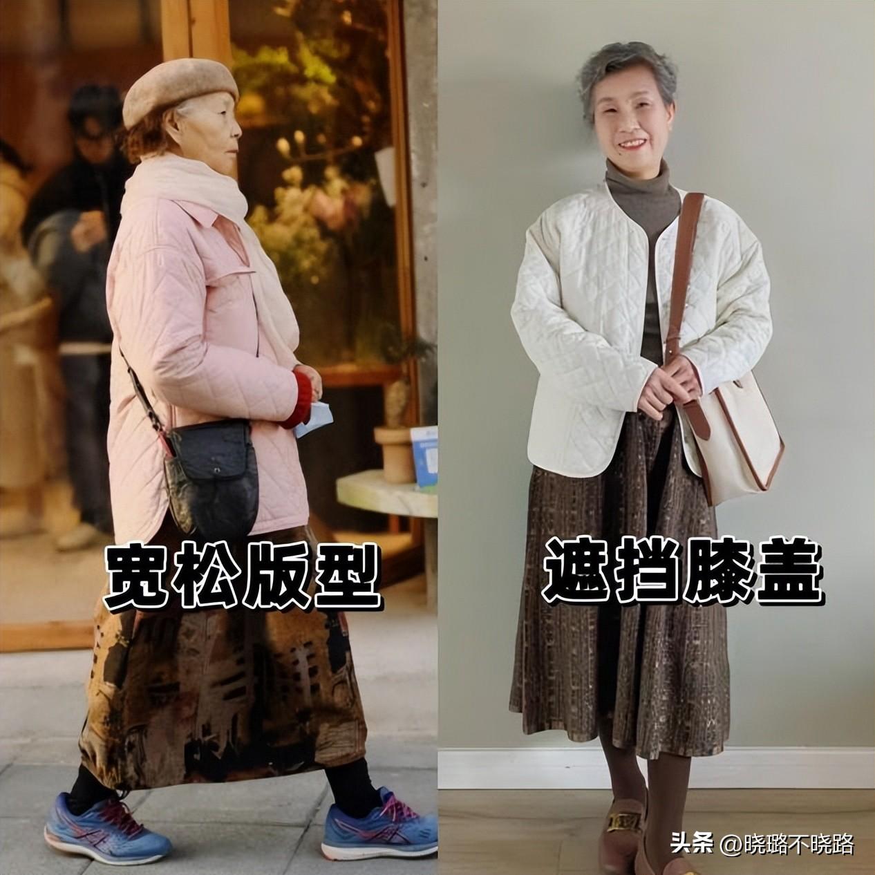 大家一定要跟着上海素人奶奶學,平時多穿一些過膝的半身裙,但是爲了避免穿出五五分的感覺,建議在搭配的時候選擇高腰線的過膝半身裙,拉高腰線之後能夠更好的分割比例。而且腰部肉肉比較多的女人儘量嘗試腰部帶有腰帶或者打攬設計的款式,用細節的設計來遮擋住贅肉。
