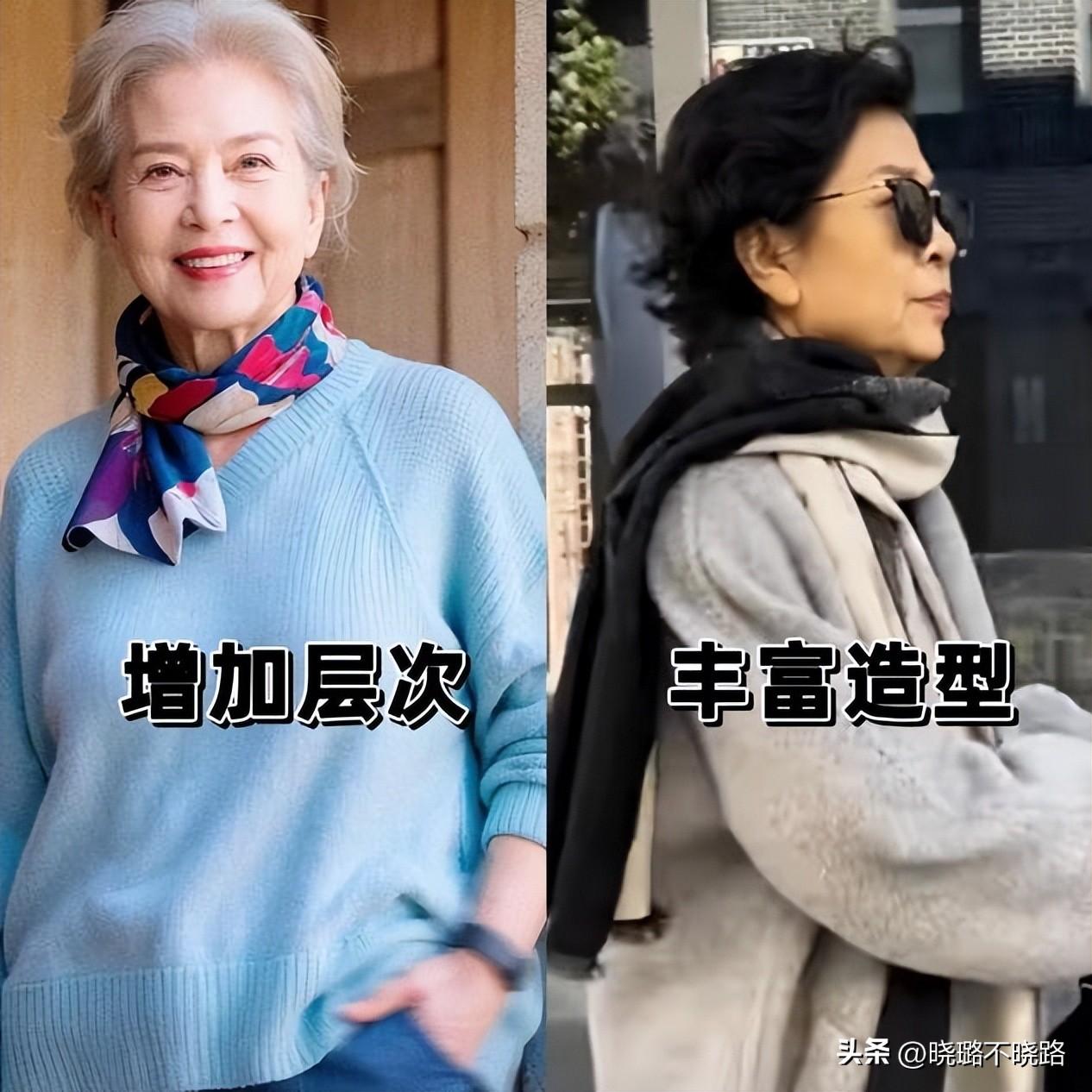 寒冷的冬天冷空氣來襲,即便裹了一層又一層也難免有些着涼,這個時候可以配上一條寬大的圍巾進行保暖,而且圍巾比較百搭,配大衣或者羽絨服都超好看。但建議過了五六十歲的女人選擇純羊毛材質織的圍巾,更加細膩有質感,不容易起球起皺。