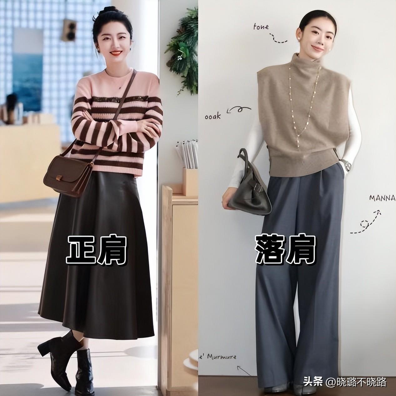 肩膀比較寬的女人如果不想給人虎背熊腰的感覺,一定要記得正肩線+細針織+過腕袖長的挑選公式。沒有明確肩線設計的毛衣,在穿着的時候主要停留在大臂1/2處,視覺上顯得肩膀又寬又厚,而且在容易膨脹的針織材質的襯托下,效果會格外明顯。所以大家要選擇正肩線的毛衣,拉伸縱向的線條更好看顯瘦。