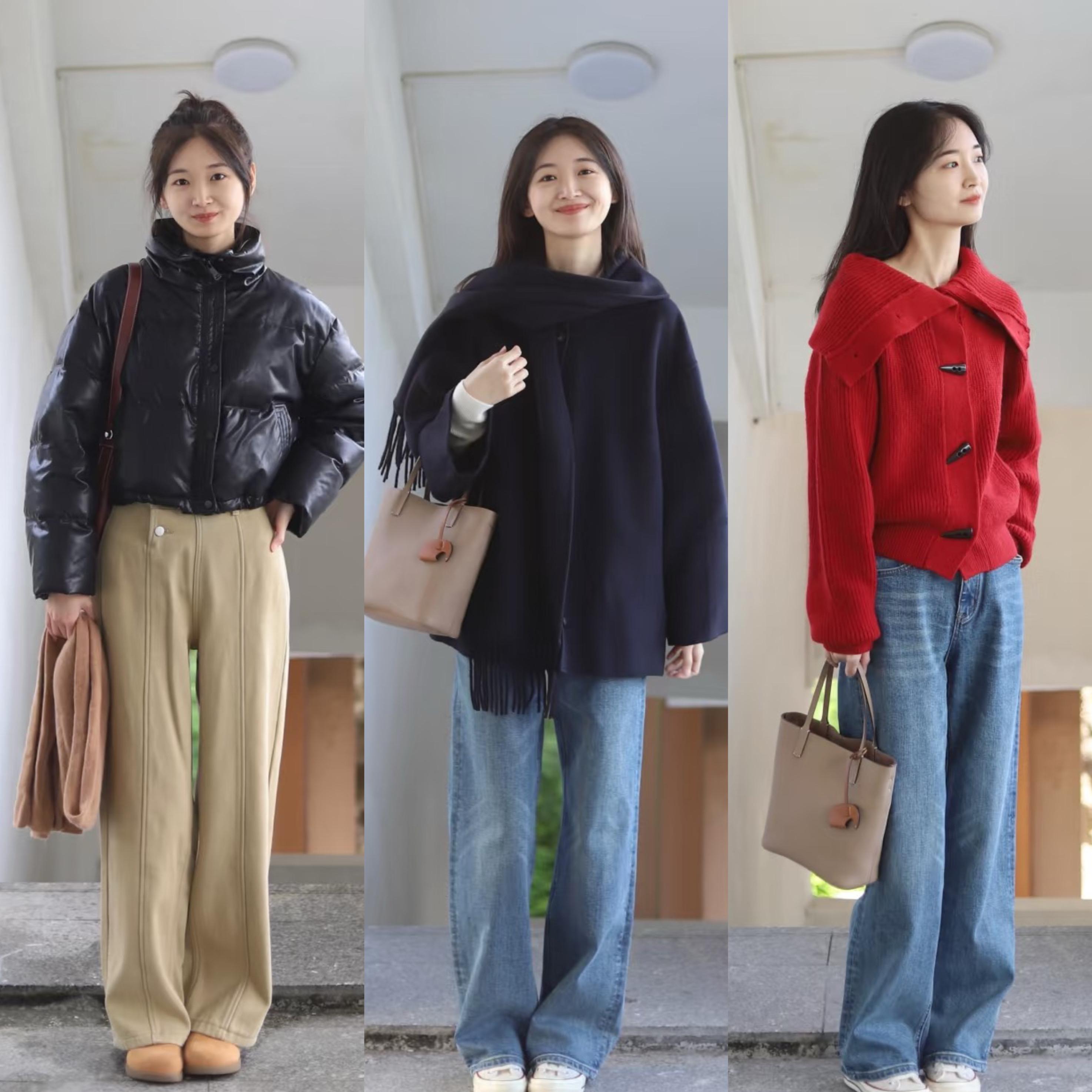 比如紅色牛角扣毛衣、以及黑色短款外套,都可以配高腰的直筒褲來穿。高腰的藍色直筒牛仔褲,簡單而大氣。直筒牛仔褲配牛角扣大衣,讓穿搭更溫暖俏皮。
