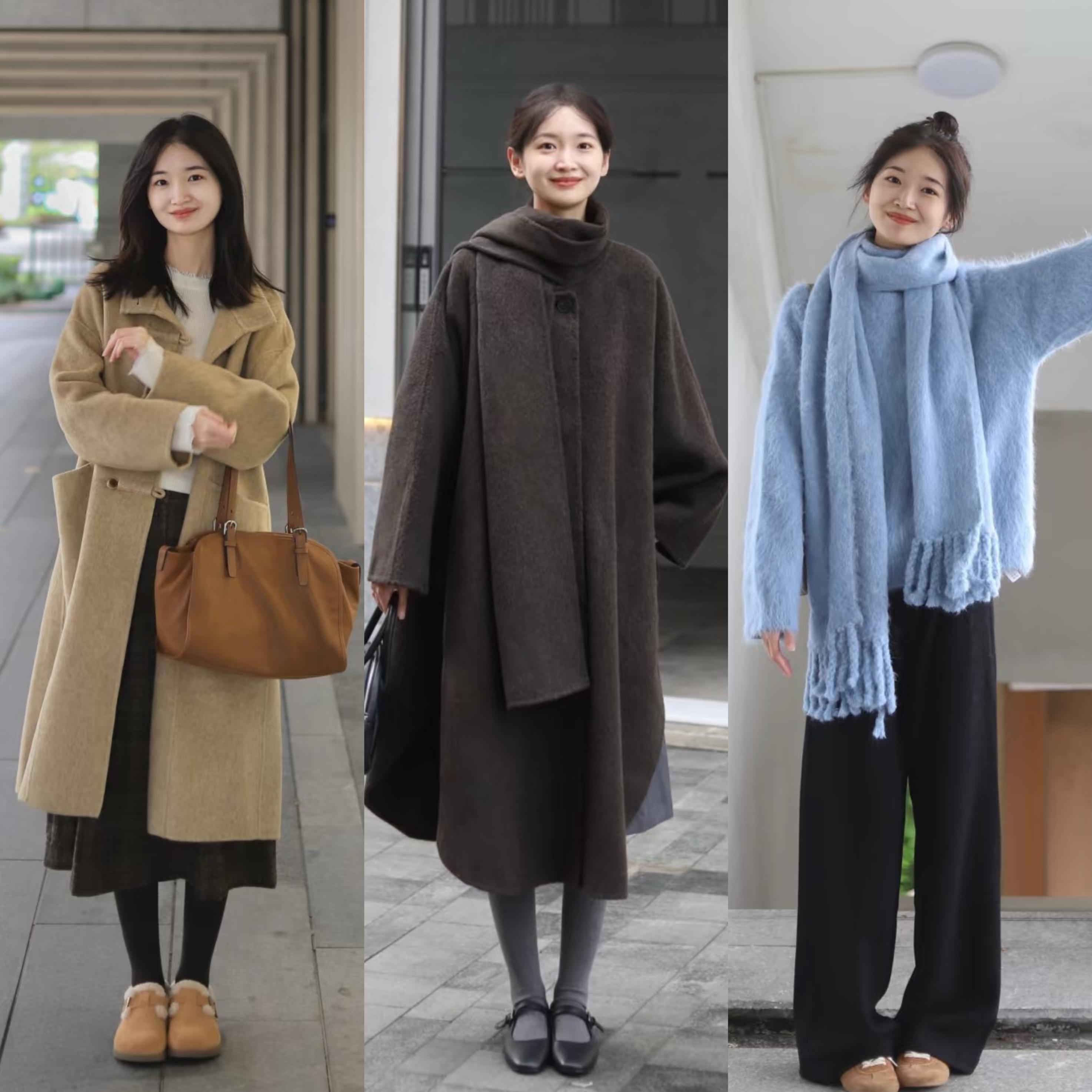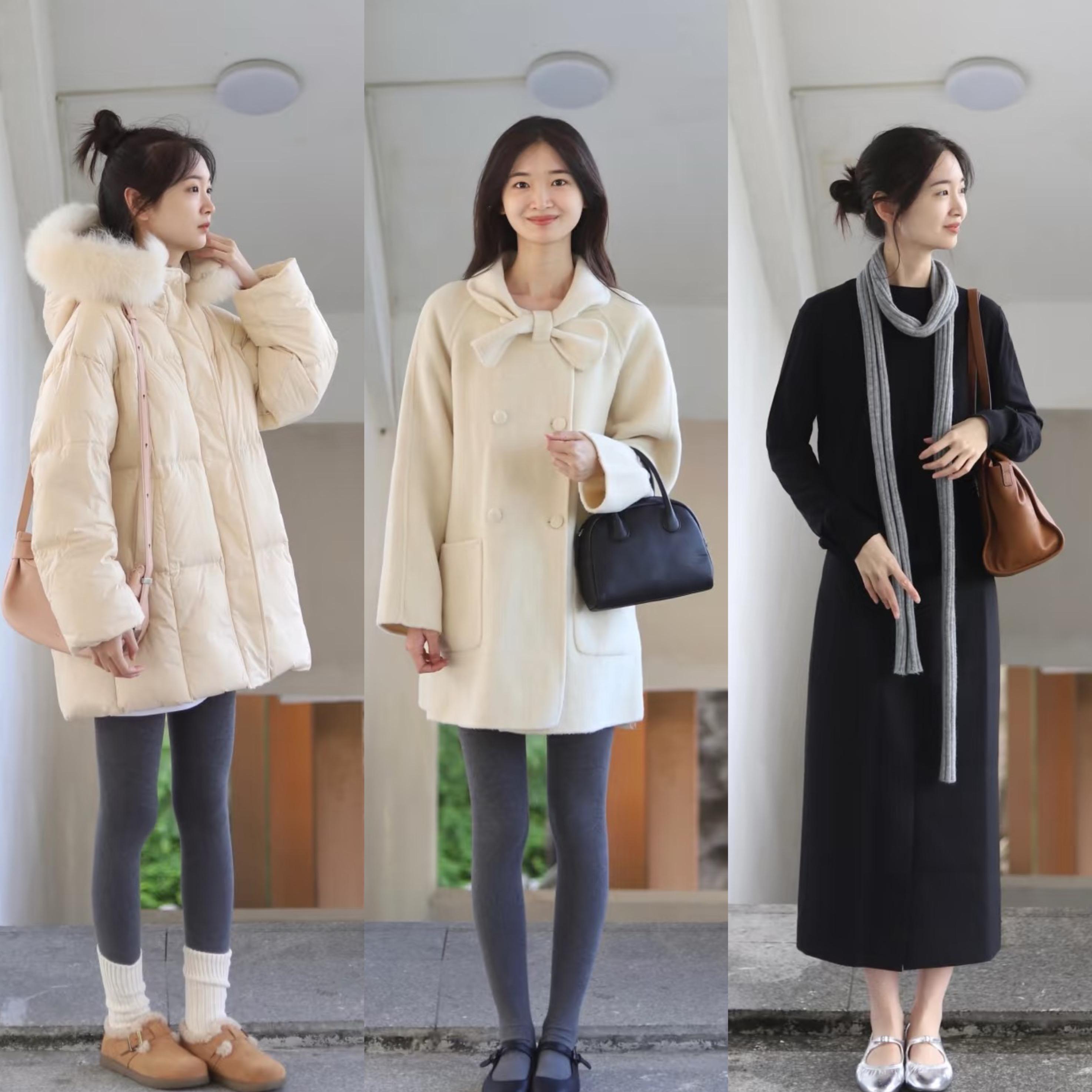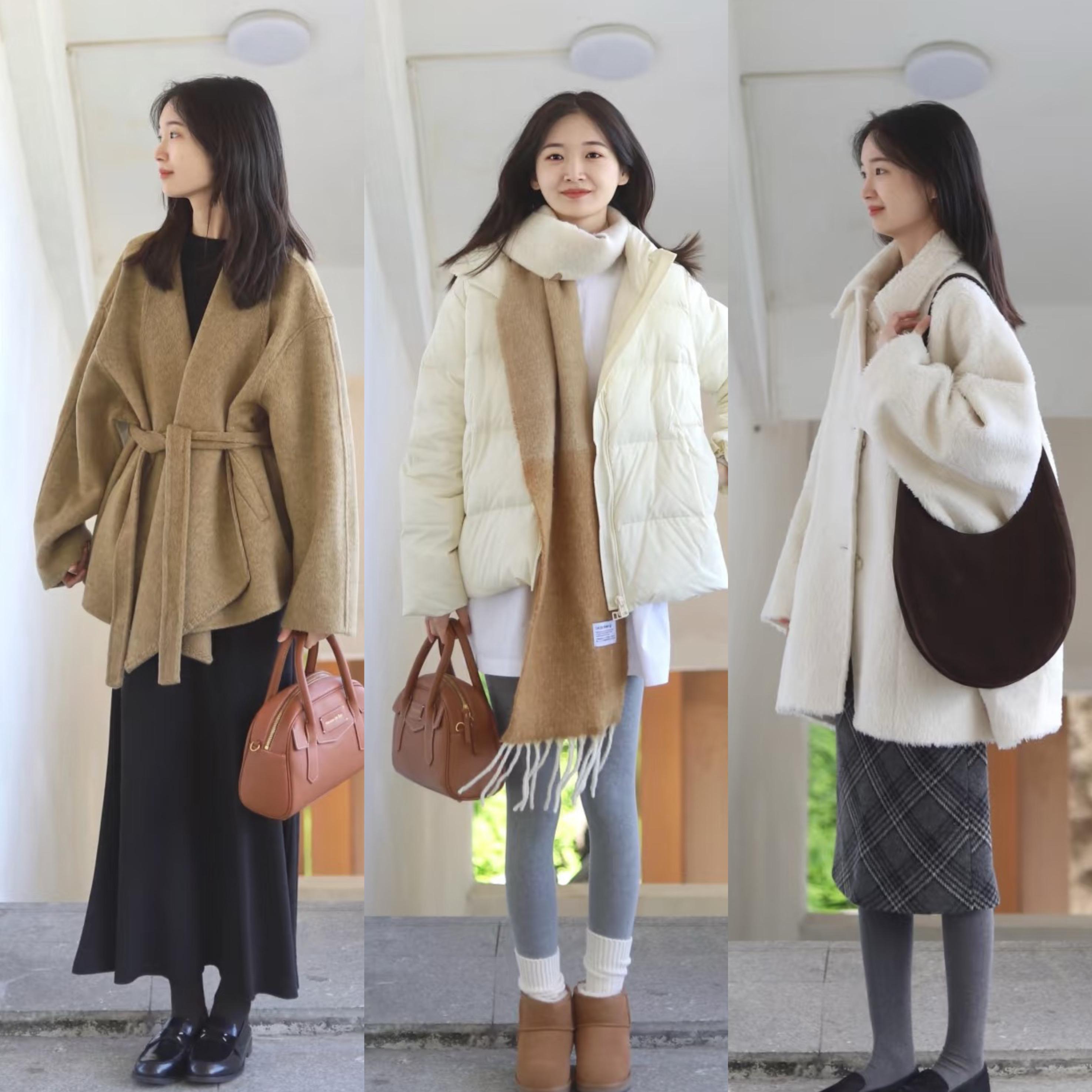 蓬鬆保暖的白色羽絨服、軟糯又顯氣質的白色呢大衣,都可以爲普通女生的穿搭提升魅力。比如白色呢大衣,配格子半身裙,文藝復古好耐看。