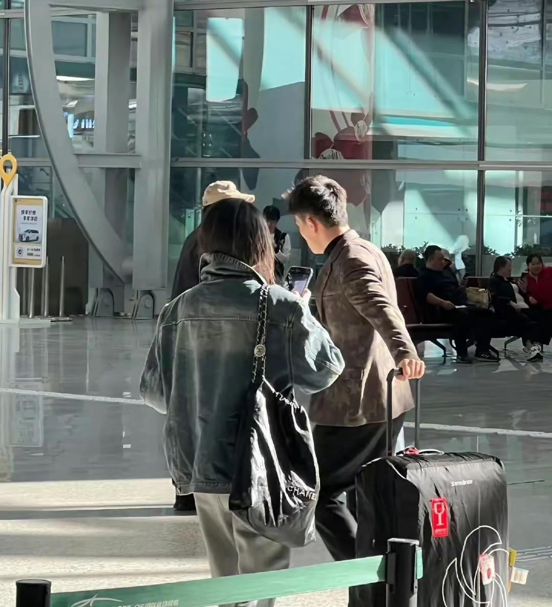 張馨予剛剛拍完戲,是一身休閒打扮,別說二人這穿搭還是很協調的。