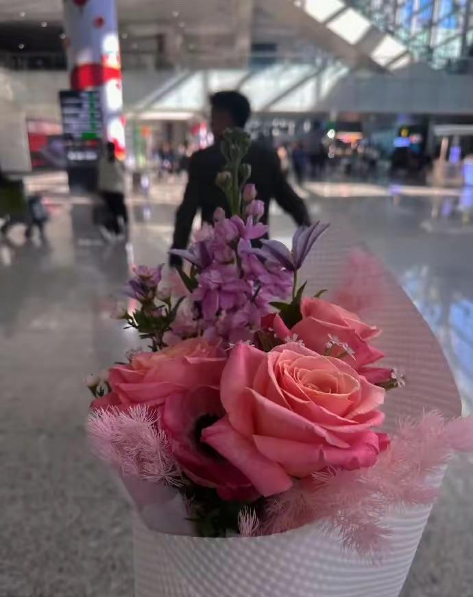 張馨予好幸福,老公接機打扮帥氣送超大花束,何捷轉業後在保衛處