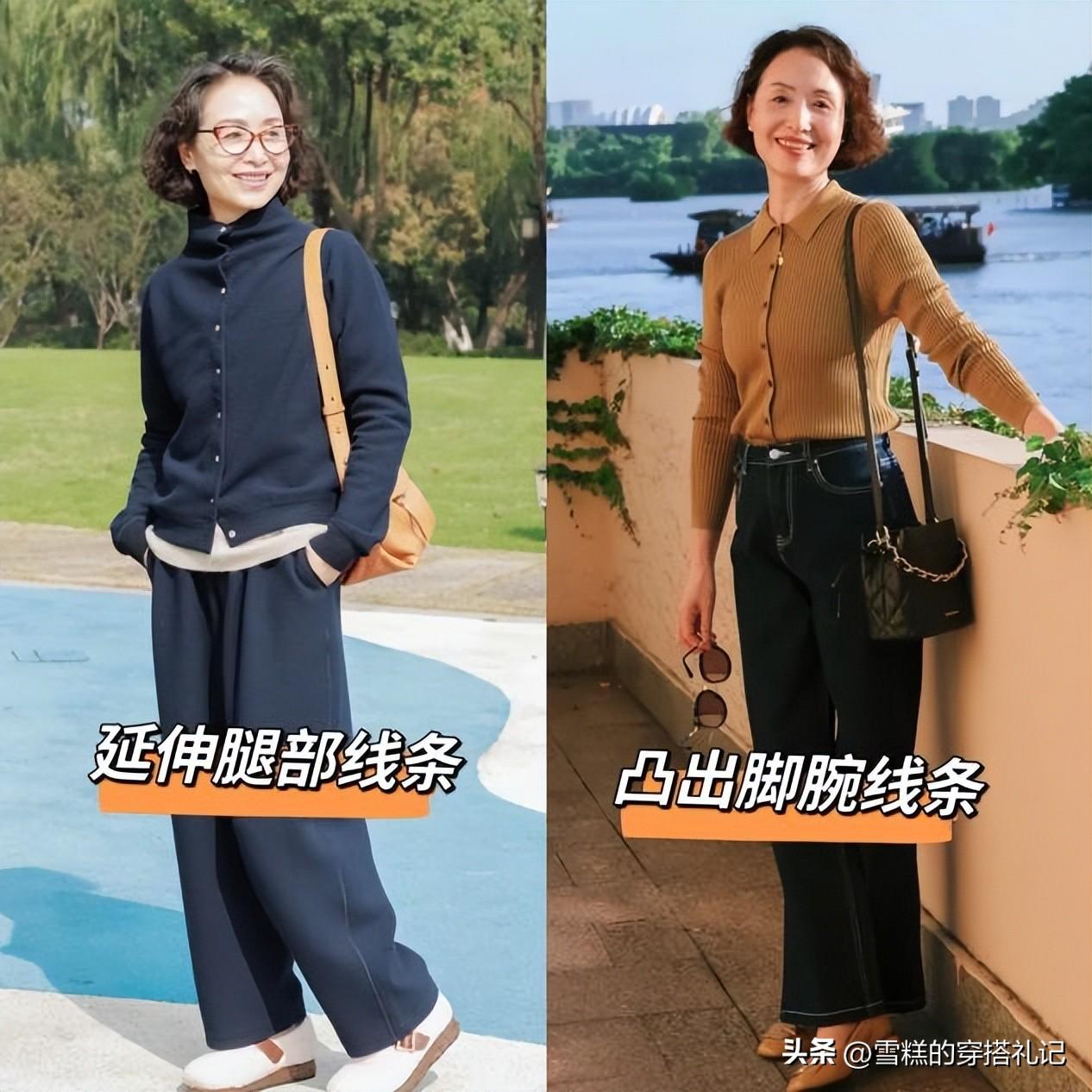上了年紀的女人難免又會有一些身材問題,比如腿部贅肉多、線條不流暢等等,這些問題回大幅度降低你本身的高級感,讓你看起來格外土氣,所以大家應該選擇硬挺的下裝進行修飾,而材質比較軟糯邋遢的針織褲子儘量避雷,否則穿起來很容易暴露身材問題。