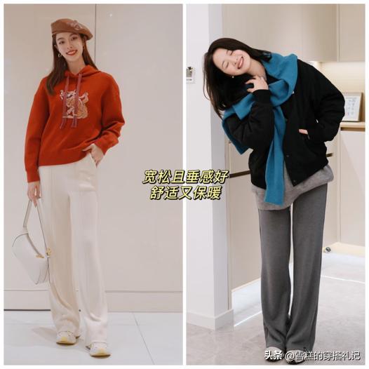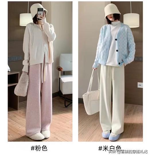 雲朵褲的時髦不僅在於它的褲型與垂墜感,更在於它不同的顏色挑選除了常規的基礎色黑白灰之外,建議挑選低飽和的淺色系,它讓穿搭顯得更出彩,並且還能襯托膚色更加白皙,推薦淺粉色、淡藍色、米白色等款式,顯洋氣的同時又不挑剔人穿,讓冬日穿搭不沉悶,有清爽乾淨溫暖的效果。