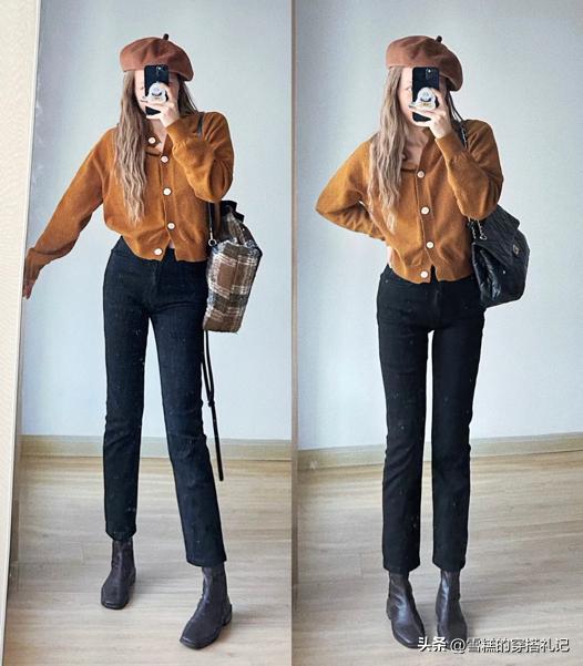 直筒九分褲中,潮流百搭且不過時的款式,小黑褲是必選,顏色耐穿耐髒,在秋冬季節穿恰好合適,上衣搭配寬鬆的外套,能形成落差,從而避免外套的臃腫感,保暖又顯瘦。不想露出腳踝進風,就讓小黑褲搭配短靴穿,推薦裸靴款式,對腳部包裹極佳,又能帶有知性氣質的味道。