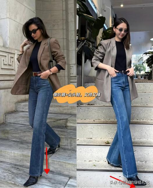 微闊喇叭褲褲腿喇叭的設計在視覺上有延長腿部的作用,因此小個子隨便穿都能獲得大長腿。不過,喇叭褲一定要打造出絕佳的洋氣感,因此在選鞋上顯得非常關鍵,儘量不要選中規中矩的運動鞋或者是圓頭的樂福鞋,採用尖頭的皮鞋更合適,還帶點貓跟的設計,配微闊喇叭褲最好看,有種懼怕中又彰顯女人味的效果,整個人的魅力值飆升。