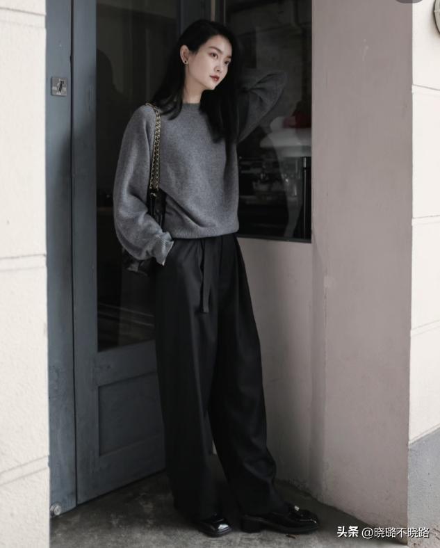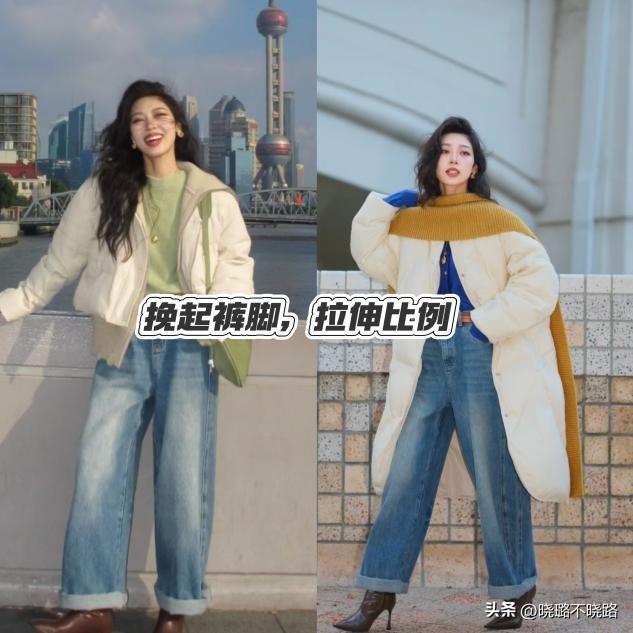 冬天的穿搭一定要保證輕盈利落,避免整體過於的厚重累贅。所以建議大家多穿九分闊腿褲,將腳腕露出來會更加顯瘦一些。如果是常規的闊腿褲,那麼爲了增加下半身的輕盈感,可以將褲腿向上挽起一些,瞬間製造出了層次與比例,顯得整個人更加高挑。