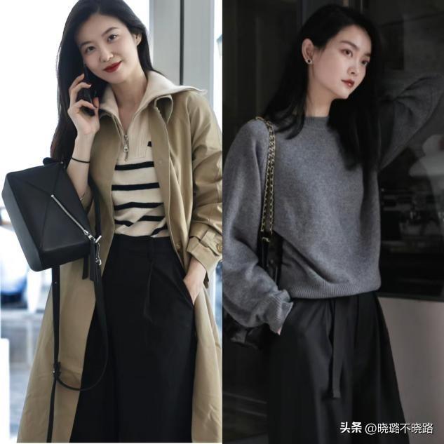 大家一定不要穿和自己膚色過於相似的闊腿褲,否則會造成視覺上的裸感,看起來格外尷尬。如果皮膚比較白,建議大家可以多看看比自己膚色深一些的闊腿褲,比如杏色或者卡其色等等。但如果膚色偏黃或者比較暗沉,更加建議你多試試黑色、棕色的褲子,能夠提升整體的氛圍感,還可以藉助深色的收斂效果達到遮肉顯瘦的目的。
