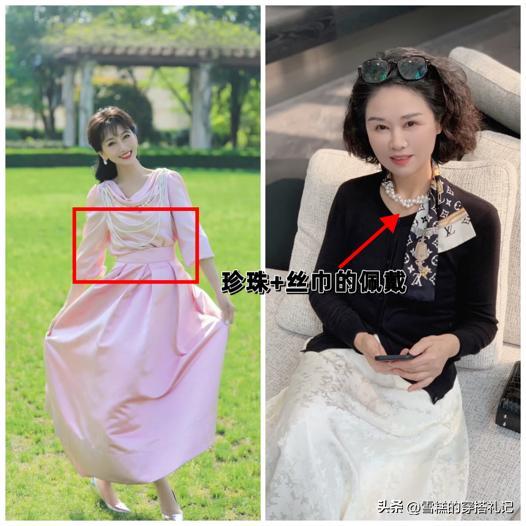 珍珠飾品想要佩戴起來更獨特,可以搭配絲巾疊穿,絲巾要系在珍珠項鍊上,讓女人顯得又貴又優雅,穿搭更出色。