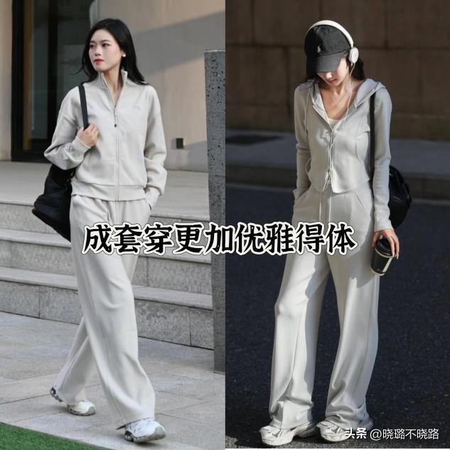 如果不想費盡心思的做搭配,那麼更加建議,大家直接選擇運動套裝,上衣與下裝採用了同樣的設計同一種面料,能夠自然地結合在一起,拉伸比例,顯高又顯瘦。而且運動套裝完全不挑年齡,年輕女性和大齡女性都可以大膽嘗試。