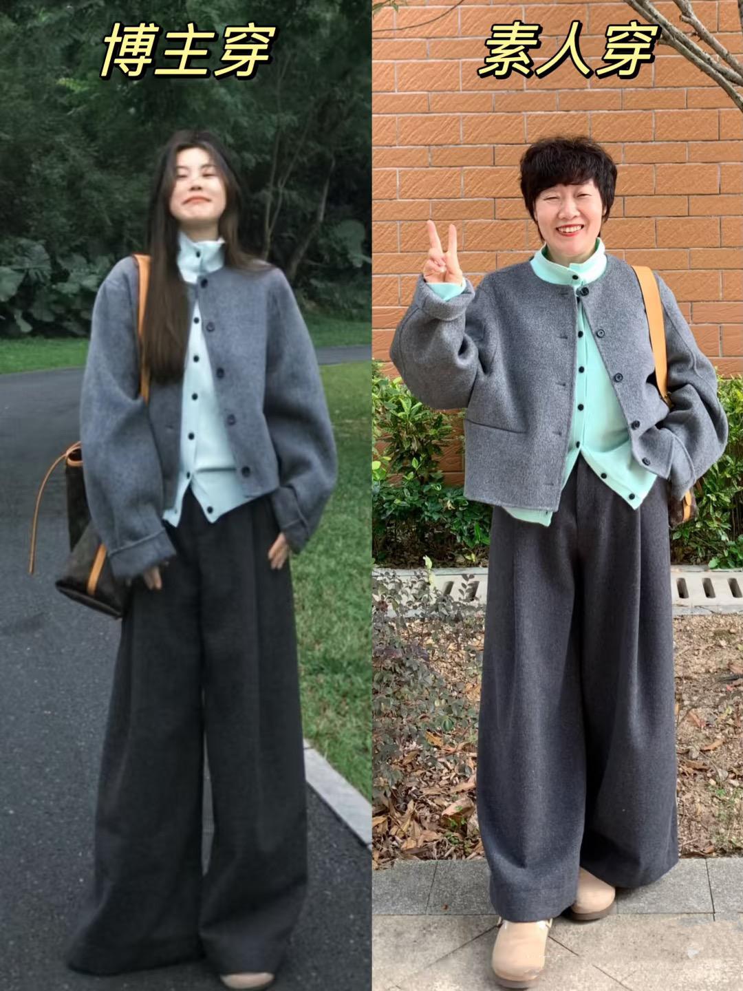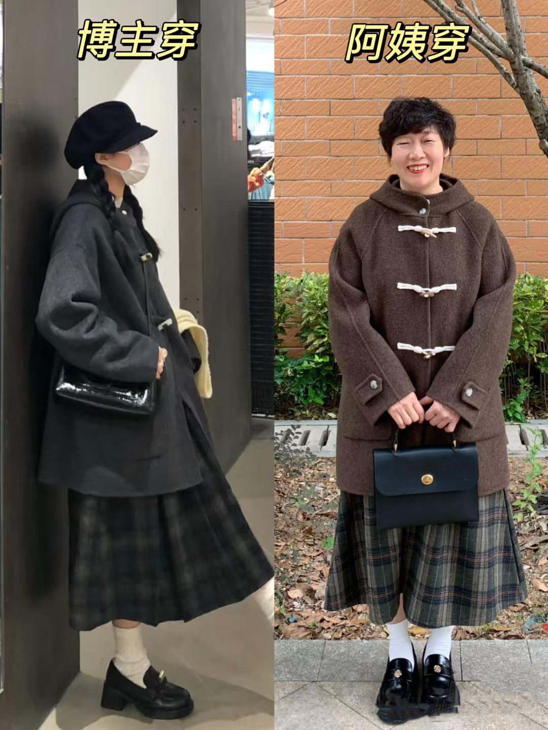 沒有想到,50+的阿姨,連學院風都能駕馭。本以爲這種牛角扣的款式、穿起來會比較稚嫩。