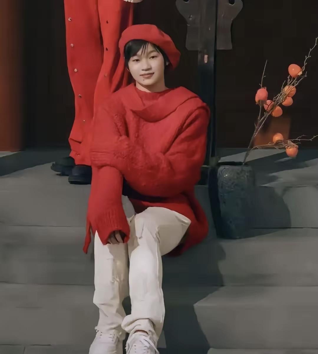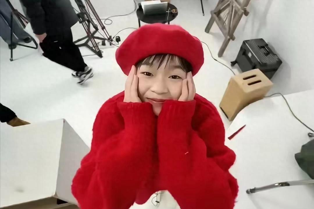 在拍攝花絮中,全紅嬋穿紅色毛衣、帶着紅色貝雷帽,雙手捂着臉、俏皮又可愛。