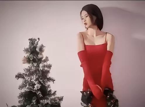 臉型精緻小巧、齊肩的鎖骨發也特別利落。紅色吊帶裙、修身的款式很性感。搭配了紅色手套、也是很有氛圍感。