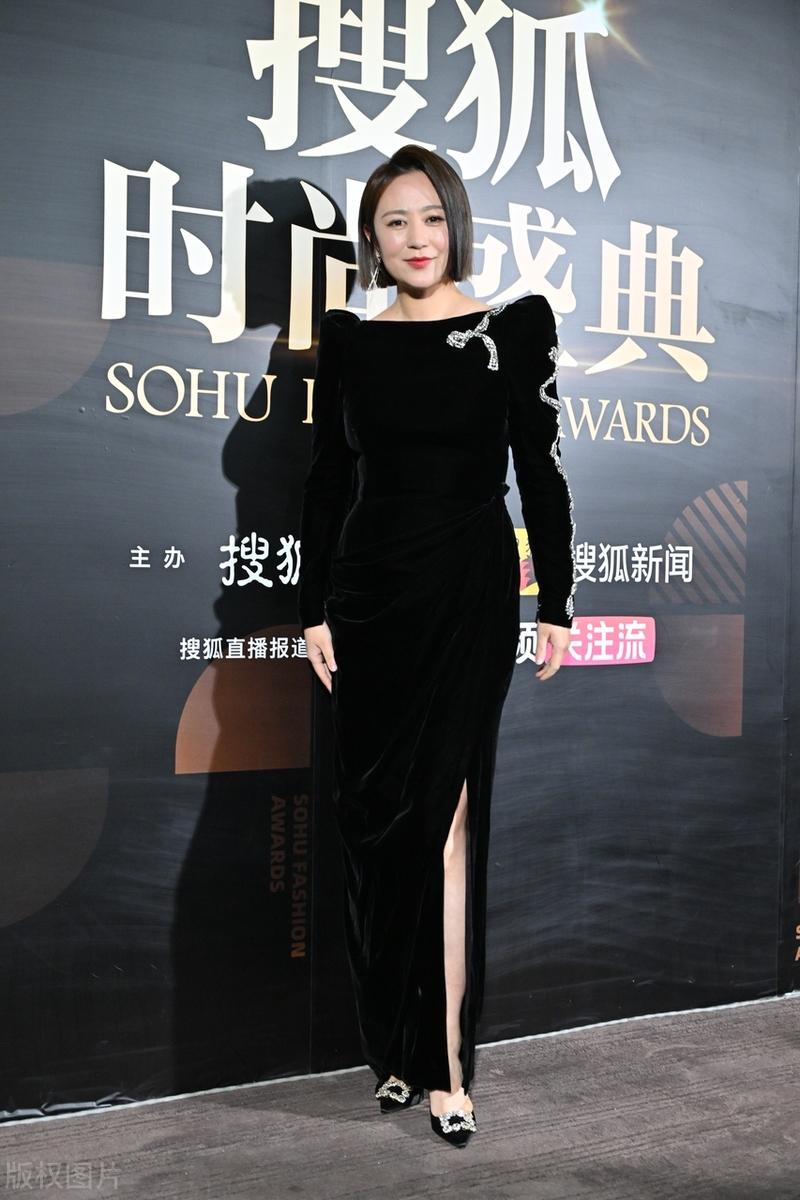 42歲馬麗,一身黑色開叉裙,滿臉羨慕、卻自然表現的很從容。