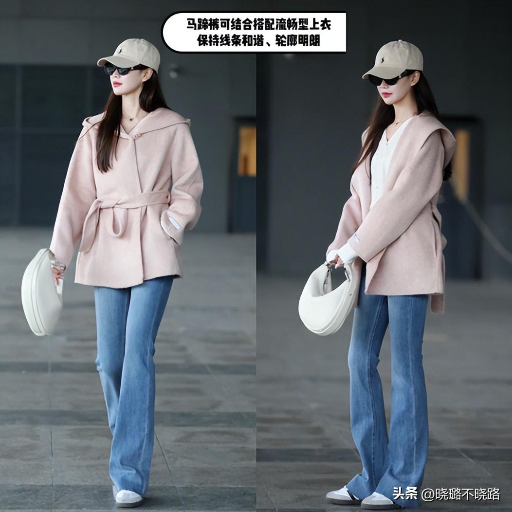 馬蹄褲所襯托出來的線條走向是絕對能夠優化好我們的腿型線條的,所以也建議各位在選擇上衣單品的時候,可以優選搭配,像比較修身或者是貼身以及直筒的利落感設計自上而下的線條,走向總是要被襯托得更加的流暢和好看一些。如果你本身的身形曲線就非常好看的話,那麼這樣的搭配可以多多的進行運用。