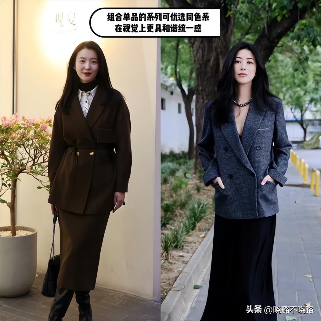 亦可使得整體的穿搭組合是屬於同色系的視覺屬性,搭配起來的時候可以讓線條的走向輪廓更顯修直感,且對於身形微胖的女性而言暗色調or低飽和度的色相組合搭配,是可以將顯瘦+流暢利落的身形美感進行雙重展現的,別錯過啦!