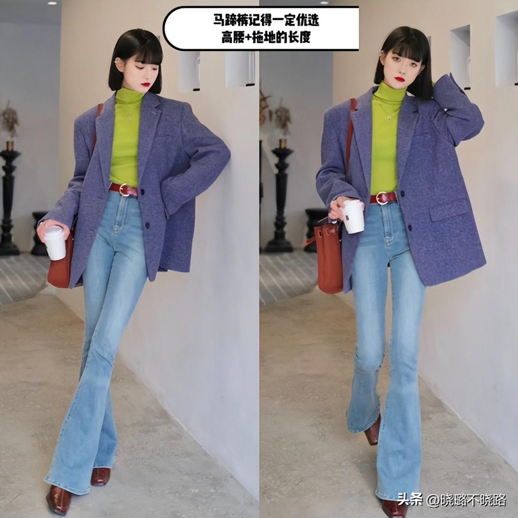 ㊀ 馬蹄褲一定認準高腰+偏長款的設計