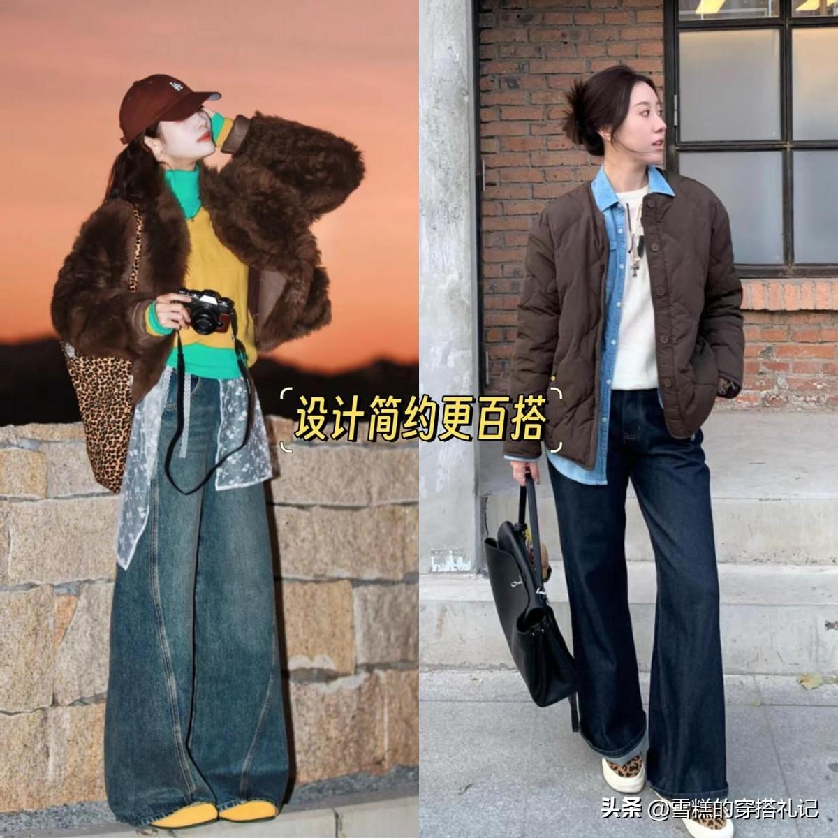 而腿型比較粗的女生,就應該入手牛仔闊腿褲,褲腿寬大遮肉的效果更好,再搭配短上衣,立馬分割出標準比例。