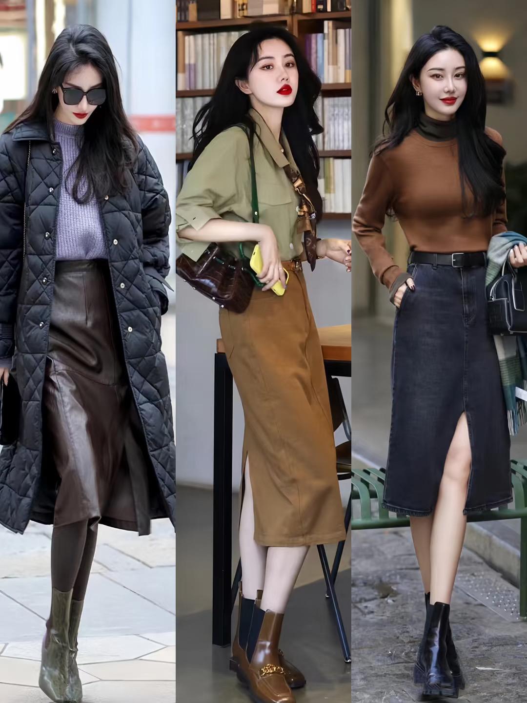 其實冬天裏帶跟的鞋靴,可以讓我們的身材更顯挺拔。比如方跟的短靴配上開衩的半身裙,就可以更好的修飾腿型,也更洋氣顯高。