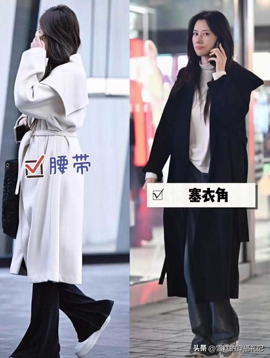 之所以很多人在冬天,總是特別容易穿出臃腫感,關鍵原因就是沒有明示腰線,尤其是搭配長款外套的時候,可以直接系一根腰帶,或者將外套敞開內搭塞衣角。