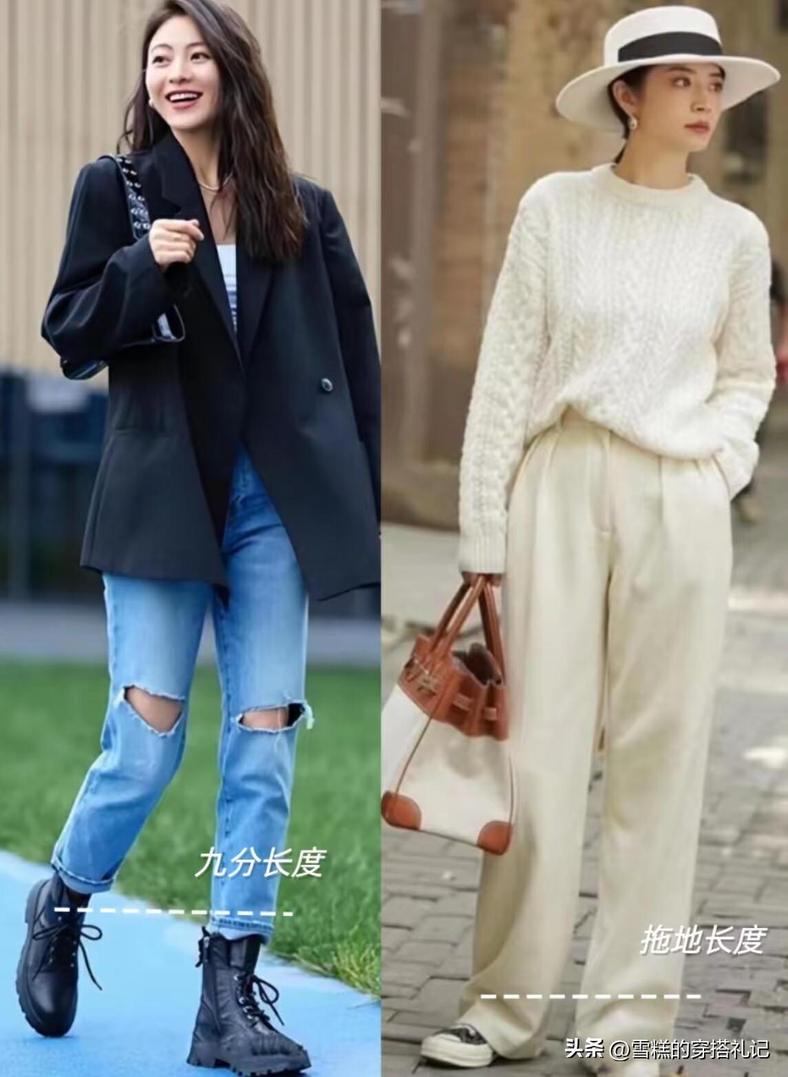 不管是哪種類型的下裝,長度的挑選上,大家一定要格外慎重,如果長度過於拖沓,褲腿的位置拖在了地上,就很容易顯得邋遢感十足,但如果你是大長腿,還一味的穿九分褲,就容易顯得很違和。
