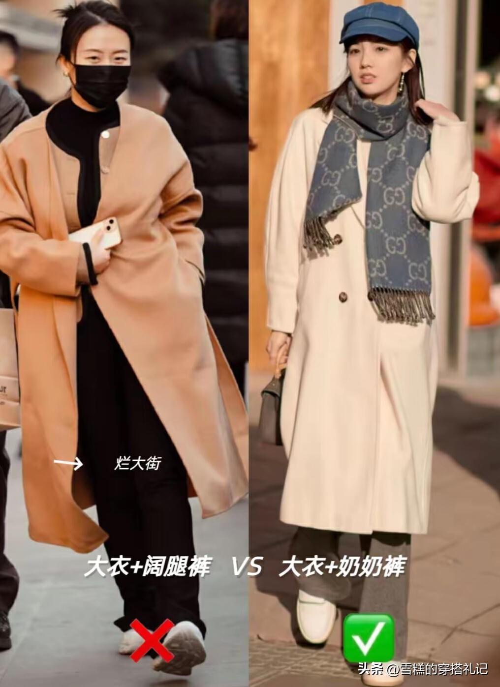 當你走在上海街頭,就會發現大家早就不穿闊腿褲了,寬大的褲腿顯胖就算了,還會顯得腿粗一圈,不管是配大衣、羽絨服還是皮草,配闊腿褲總是不夠時髦洋氣,而且還容易降低最終造型的美觀性。