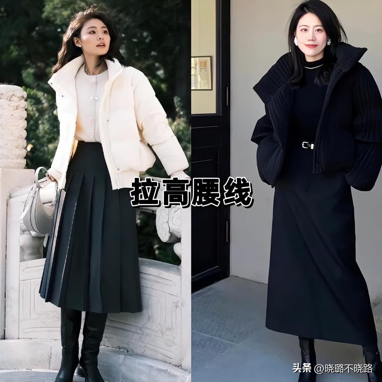 想要將休閒款式的羽絨服穿的更加優雅洋氣一些,下裝的選款特別重要,可以試試上海女人超愛的優雅浪漫的過膝長裙。但是在搭配的時候記得將內搭的衣襬塞進裙襬裏,這樣可以製造出高挑的腰線,與短款羽絨服一起分割比例,將矮小的身材襯托的又高又瘦。