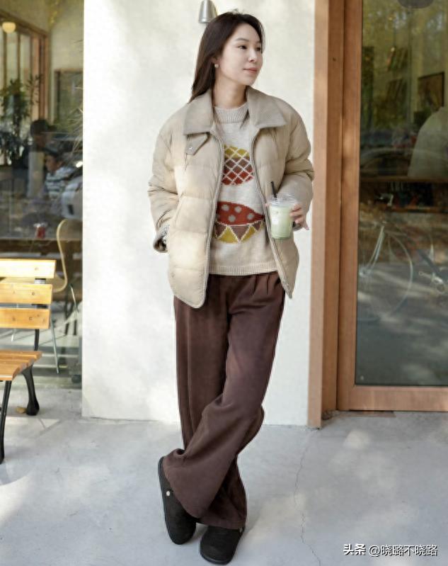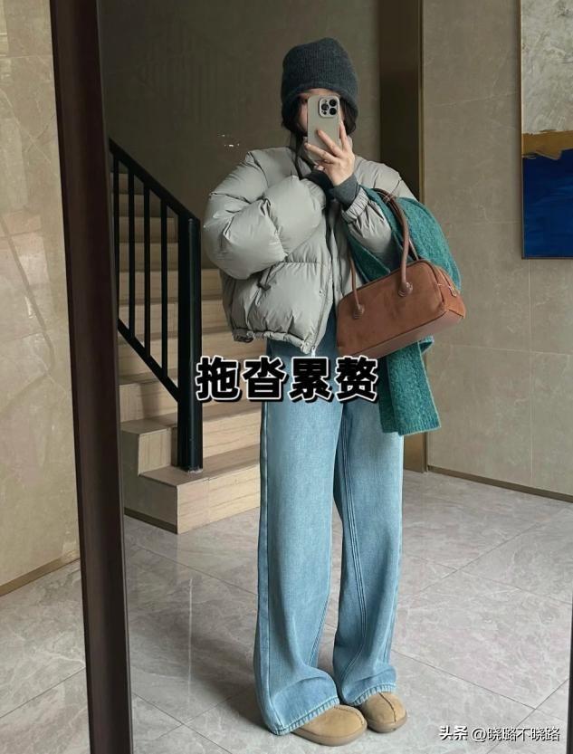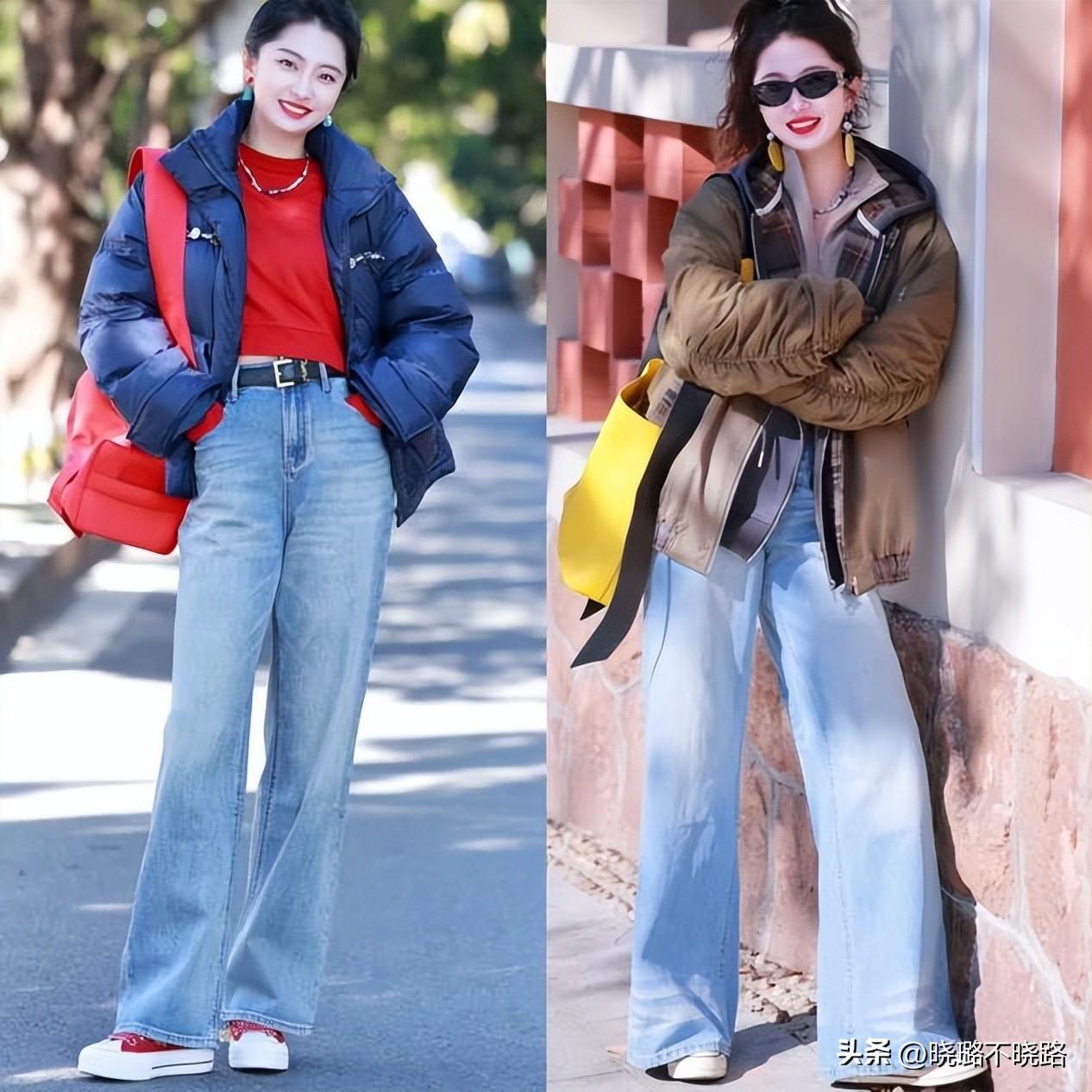 穿法3、羽絨服+微喇褲,法式復古感拉滿