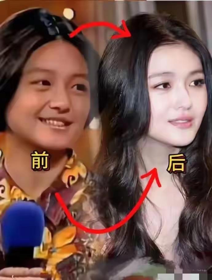 剛出道的時候,她皮膚黑黑的、臉型也沒有那麼流暢、下巴的線條不夠精緻,就連穿衣搭配都有點土氣,這些年優雅了很多、也洋氣了很多,皮膚白了更美了。