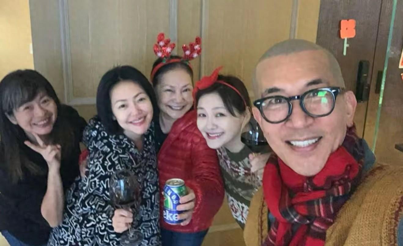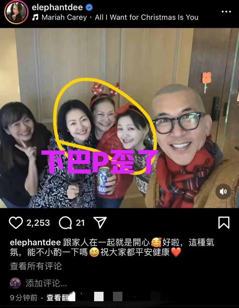 小S在社交平臺曬出來的,就是這張全家福美照。媽媽帶着鹿角的髮箍、穿着紅色羽絨服、滿臉的笑意、非常慈祥。