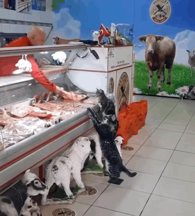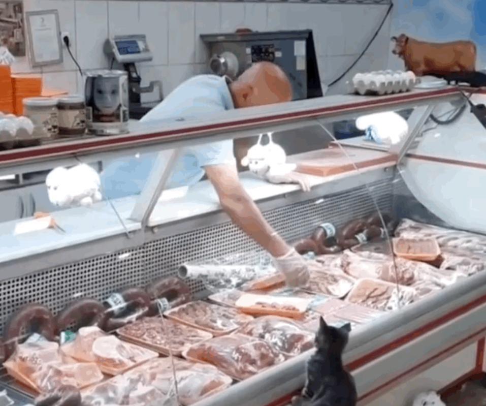 某天,一隻流浪貓懷着忐忑的心情走進了一家肉店。
