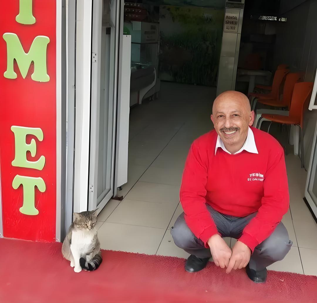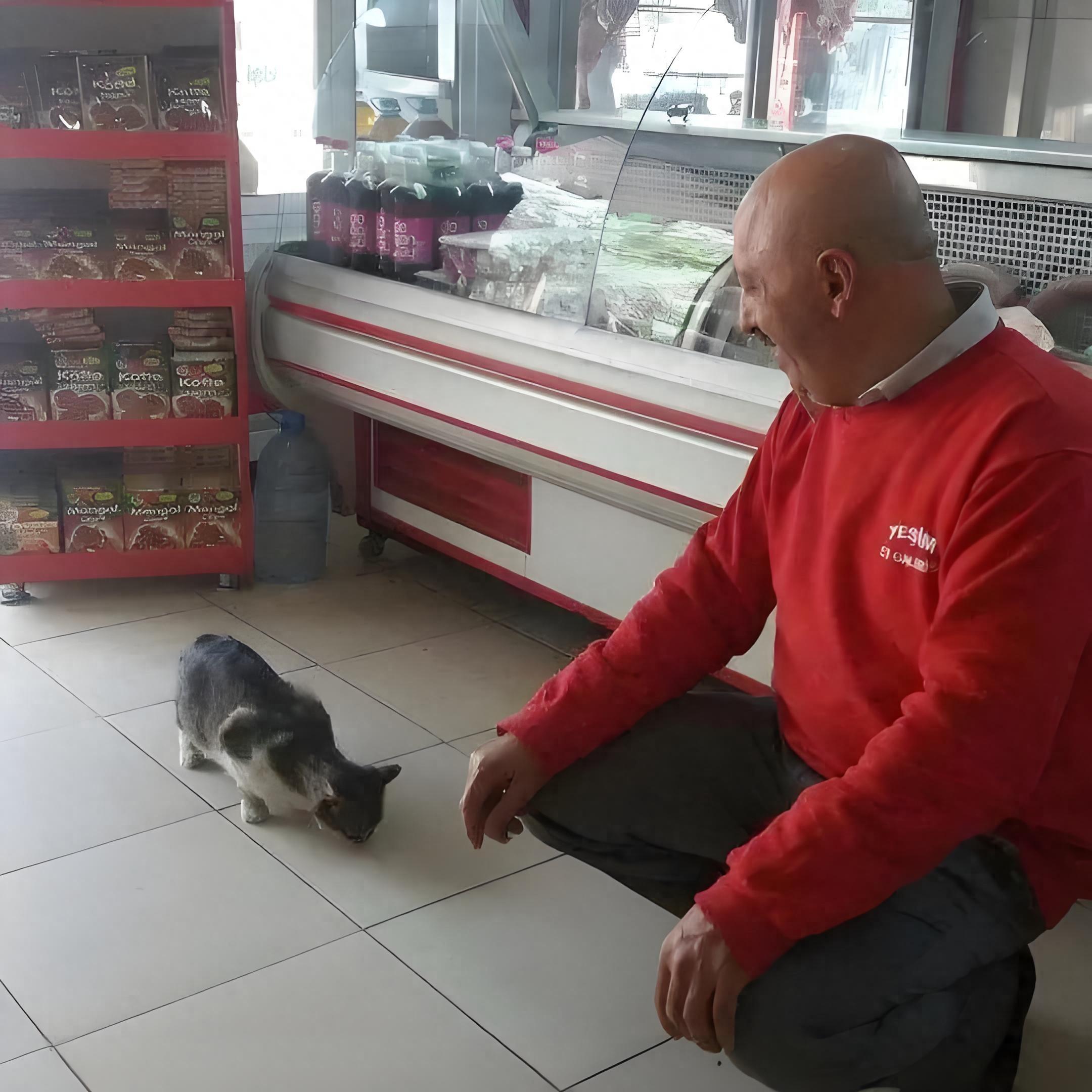 第三天,第四天……小貓咪成爲了肉店的常客。