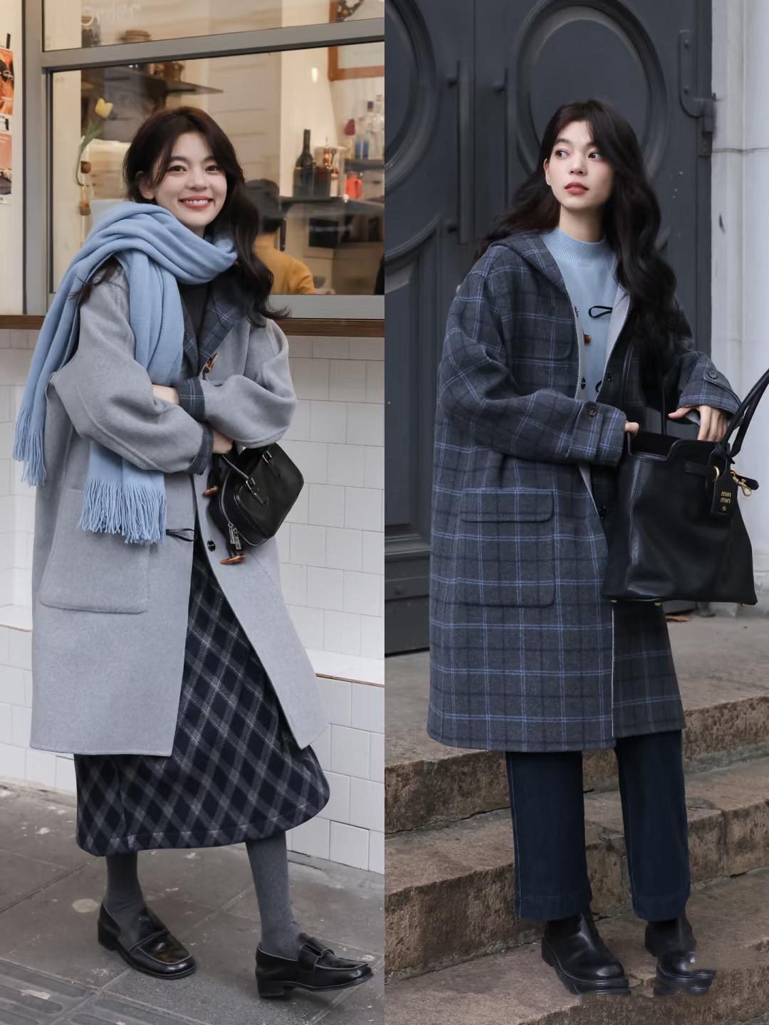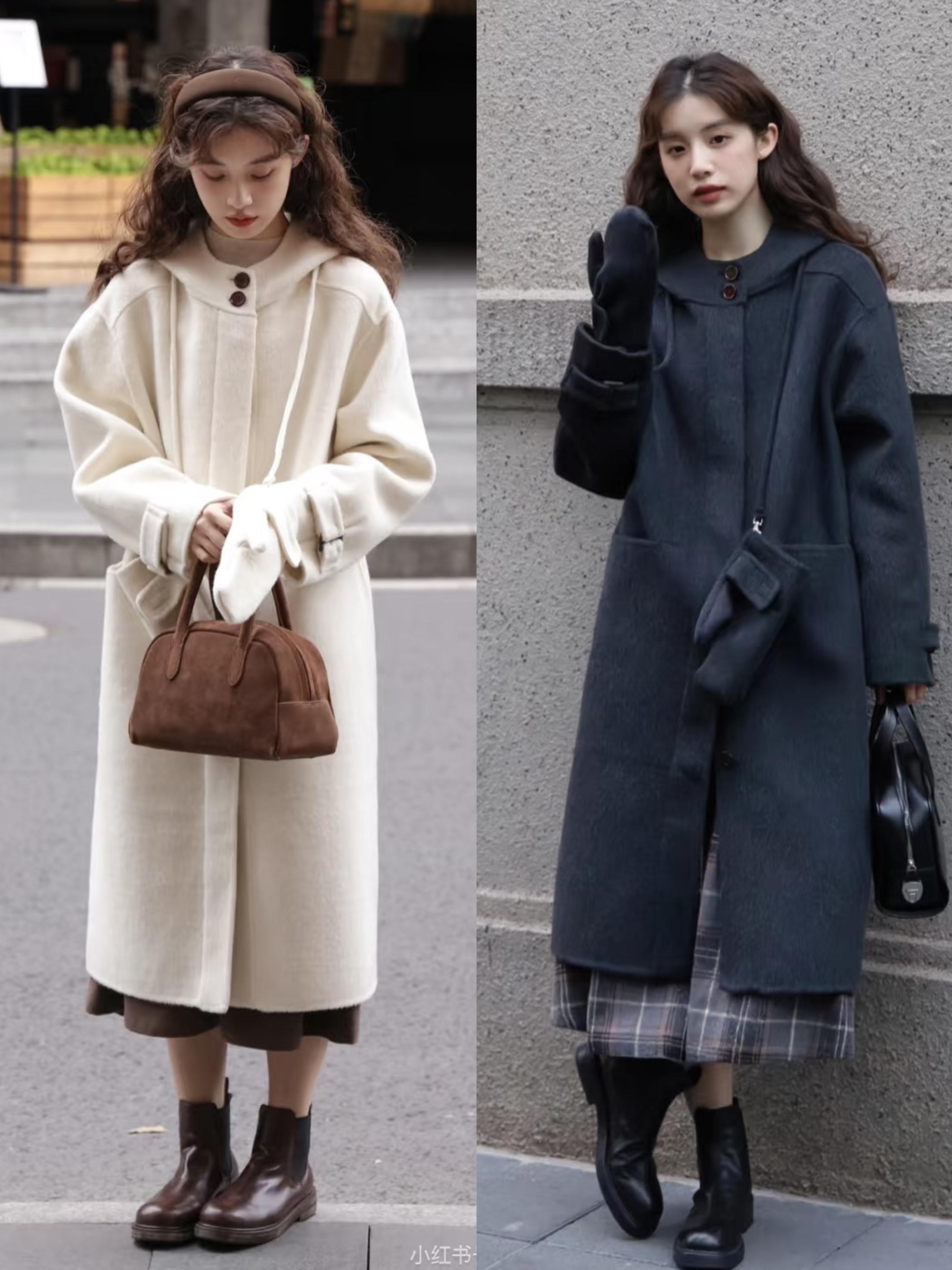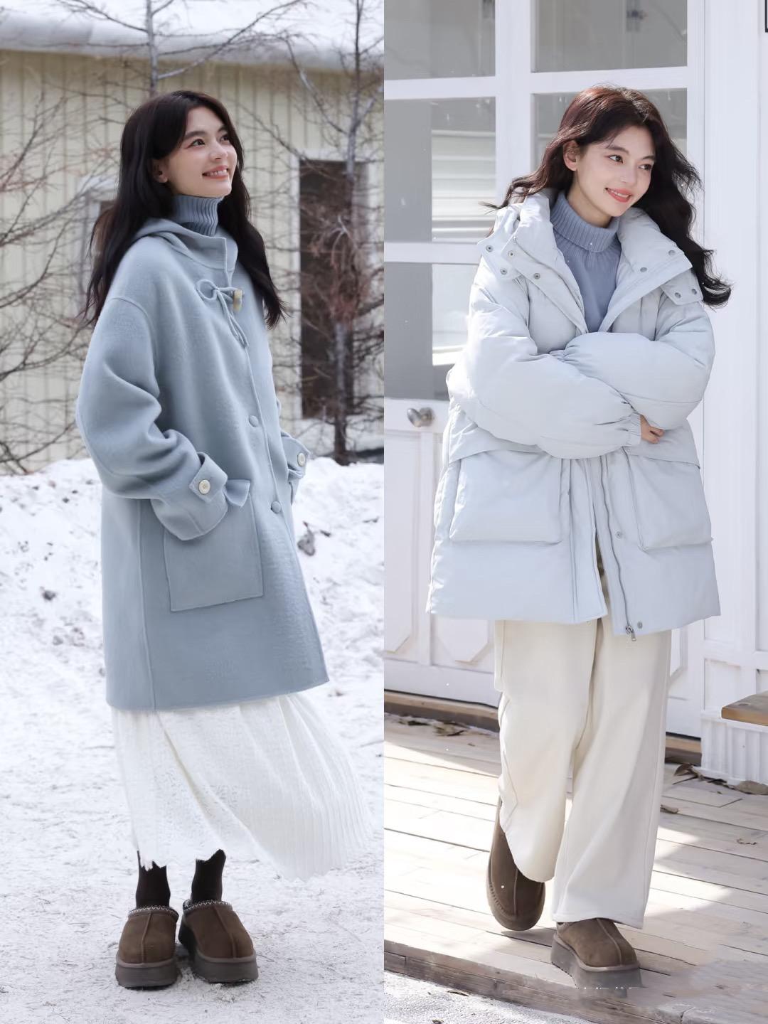 雖然不建議小個子女生穿着長款羽絨服,但中長款的大衣還是可以嘗試的,因爲大衣面料更垂順、視覺上沒有明顯的膨脹感。