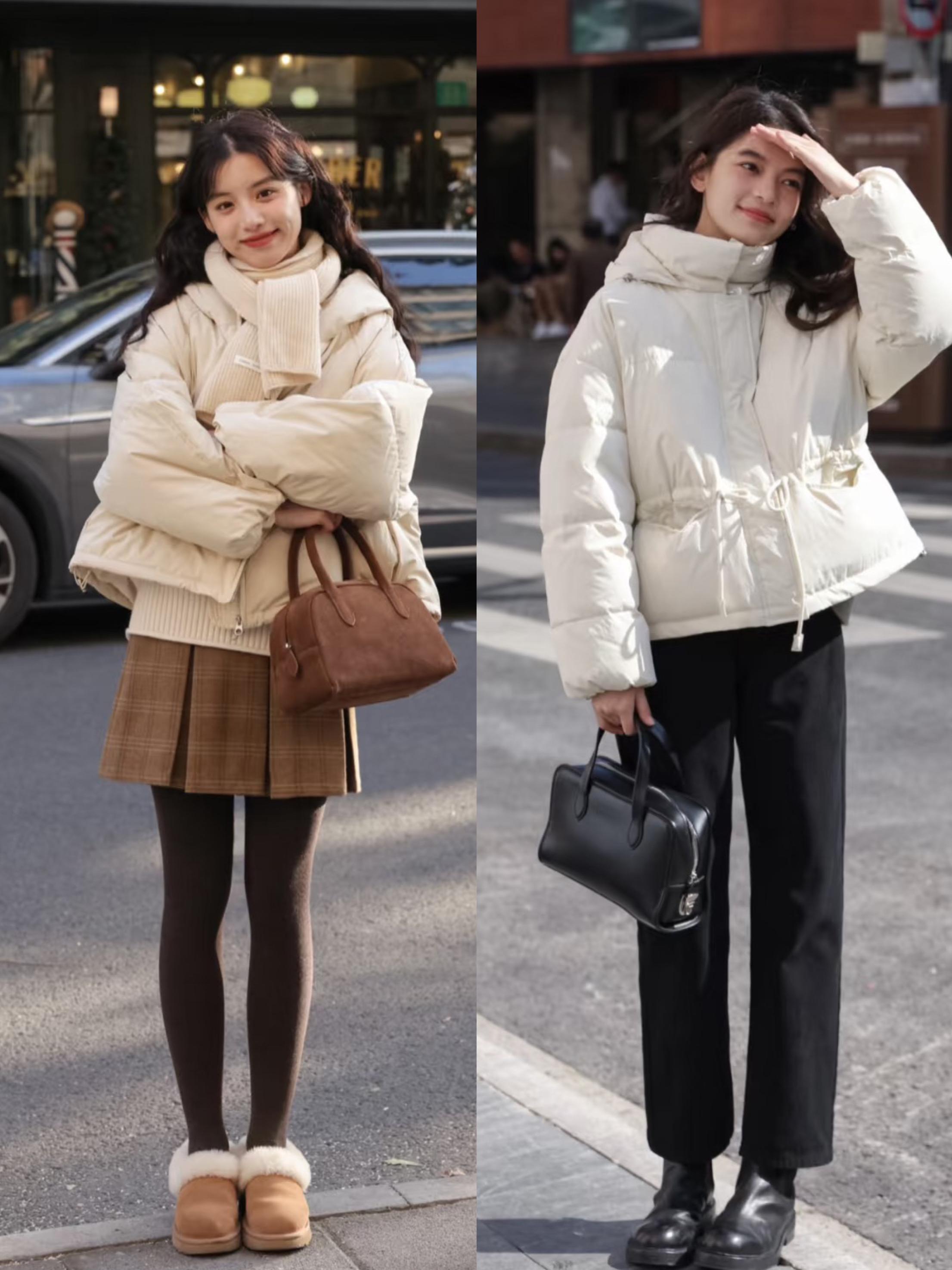 白色系的羽絨服,有一種更清新甜美的感覺。短款的羽絨服,搭配很柔和的白色系,有一種特別乾淨又清爽的美。