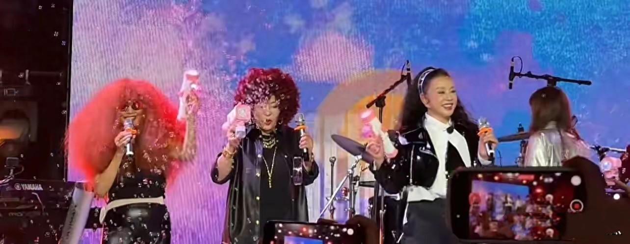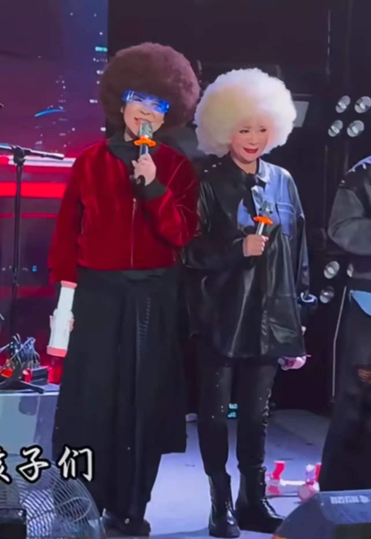 倪萍和蔡明站在一起,纔是最歡樂的一組。奶瓶穿紅衣黑裙、本就是非常親切的奶奶,她們年紀大了、也更放飛自我了。