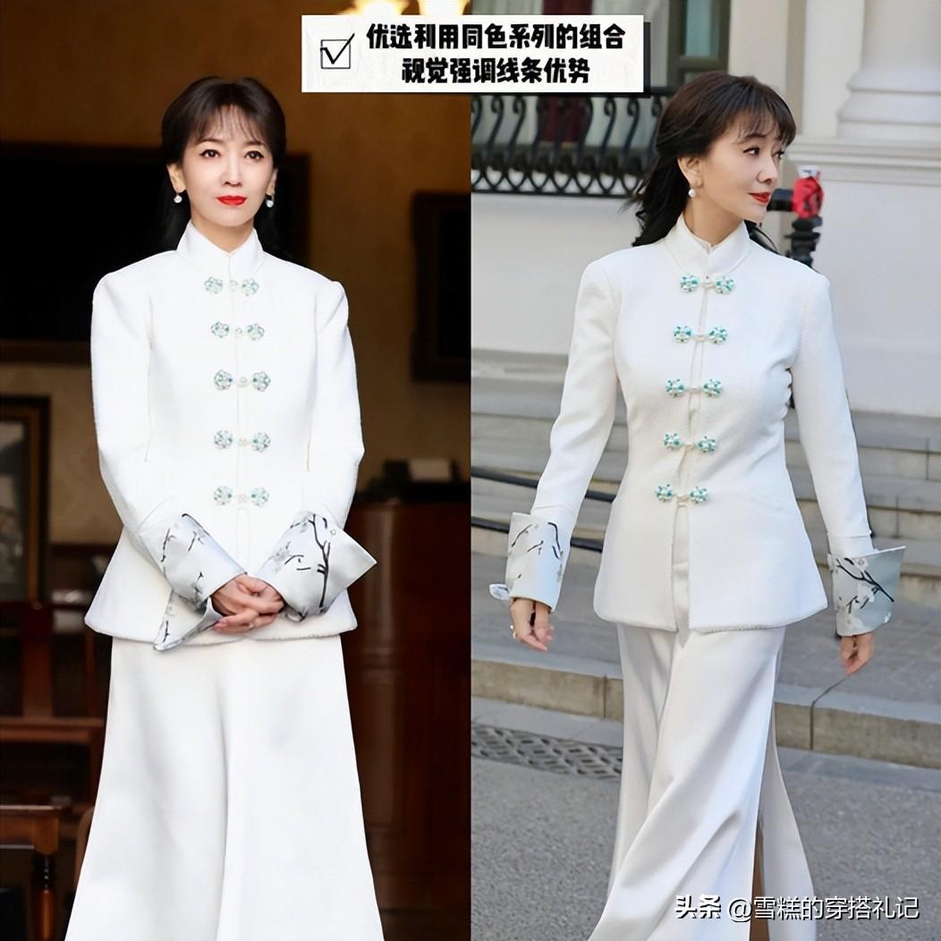 對於吳彥殊老師來說,更多的時候其實她會更加喜歡彰顯優雅感和貴氣一些的穿搭呢,所以在選擇單品系列搭配的時候,像經典的旗袍、長裙系列絕對是她的優選搭配啦,色調屬性的運用也會更偏向於基礎百搭的中性款,推薦各位同齡階段的女性借鑑。