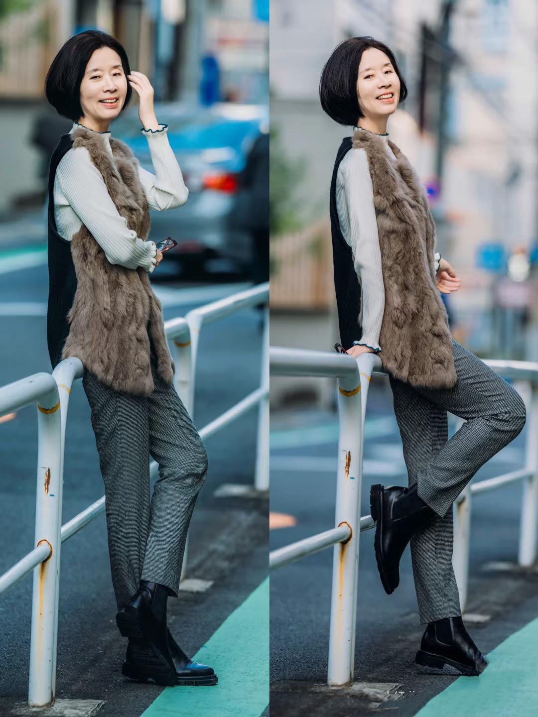 一組很顯貴、又特別洋氣的穿搭。這種皮毛馬甲,身材苗條的女士可以嘗試,如果體型臃腫就換成常規款馬甲吧。