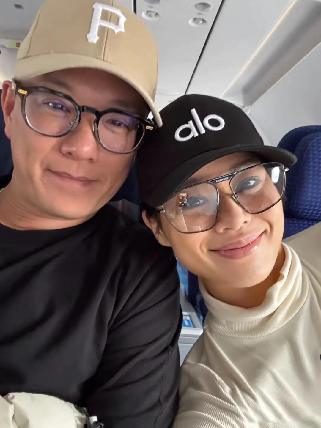 胡杏兒和她的老公也是特別恩愛,老公和她貼着肩頭拍照,兩個人都是很放鬆的狀態。對着鏡頭微笑、一看就是幸福模樣。