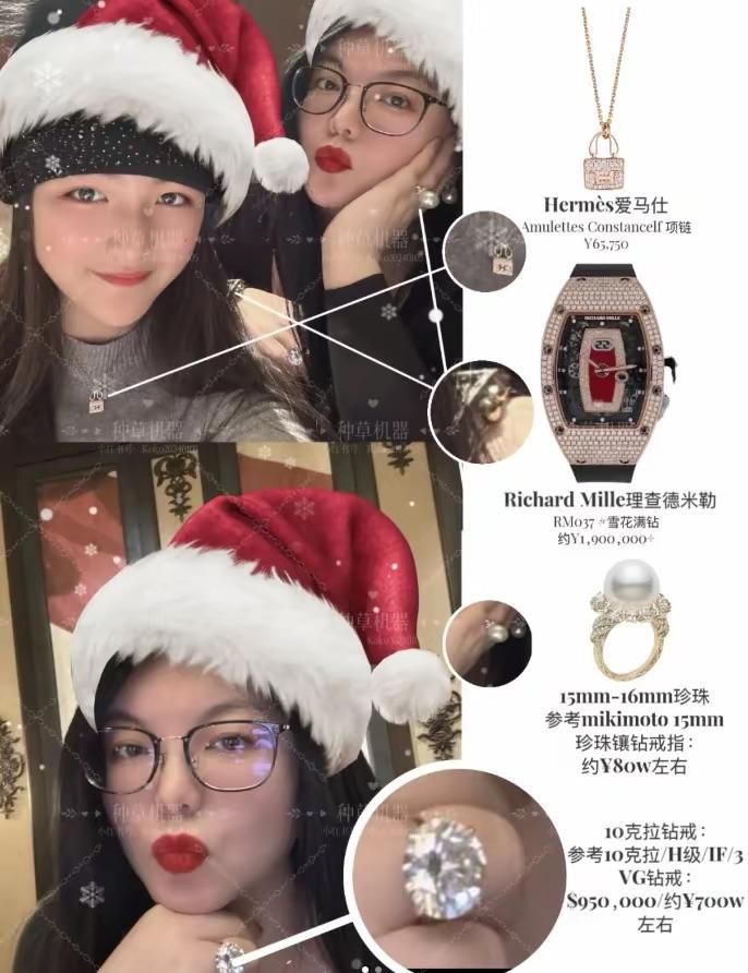 鴿子蛋是的鑽戒、還有超大的珍珠,愛馬仕的項鍊、雪花滿鑽的手錶。李湘這一身行頭下來,普通人買一套房都用不了啊。