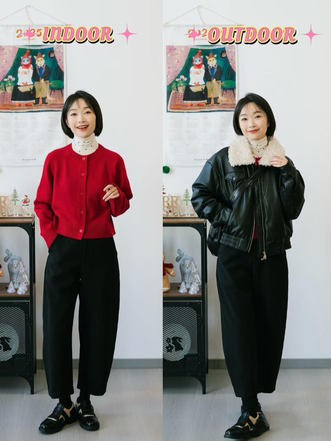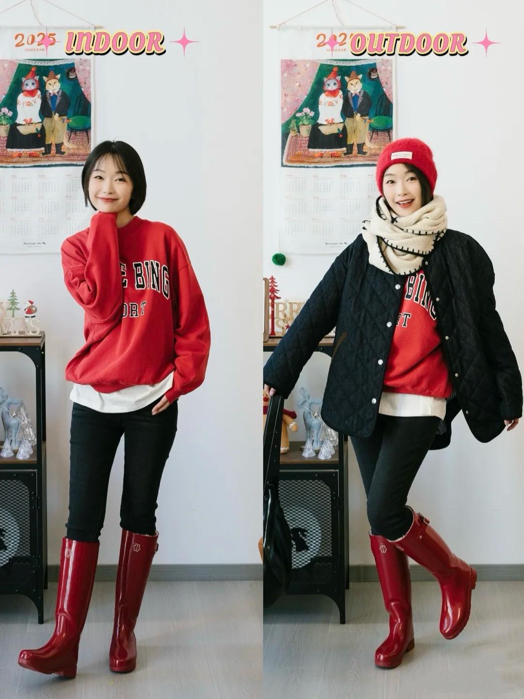 黑色的絎縫棉衣,穿起來更顯瘦。絎縫棉衣,直接搭配紅色衛衣、白色T恤,會有一種更清爽洋氣的美,紅色衛衣作爲內搭,讓簡約穿搭有了節日氛圍。