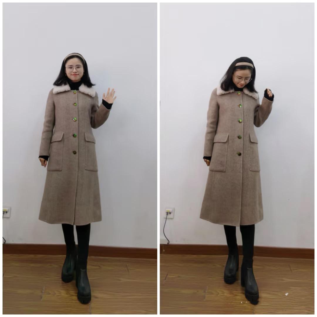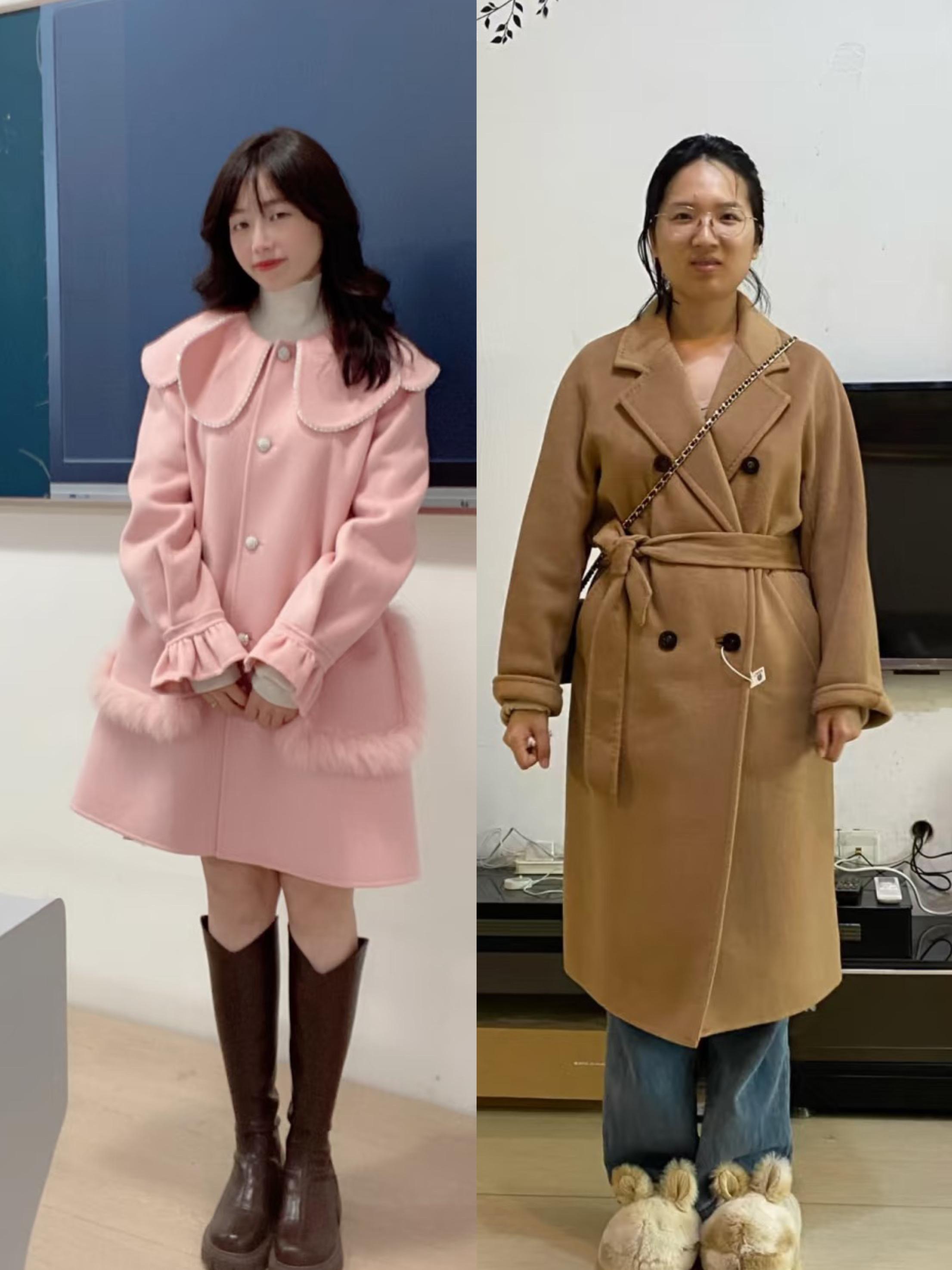 厚實的毛呢大衣,增加毛領修飾,視覺上也會更加笨重一些。尤其是我們選擇這種大口袋的款式,身材五五分、一點都不優雅。