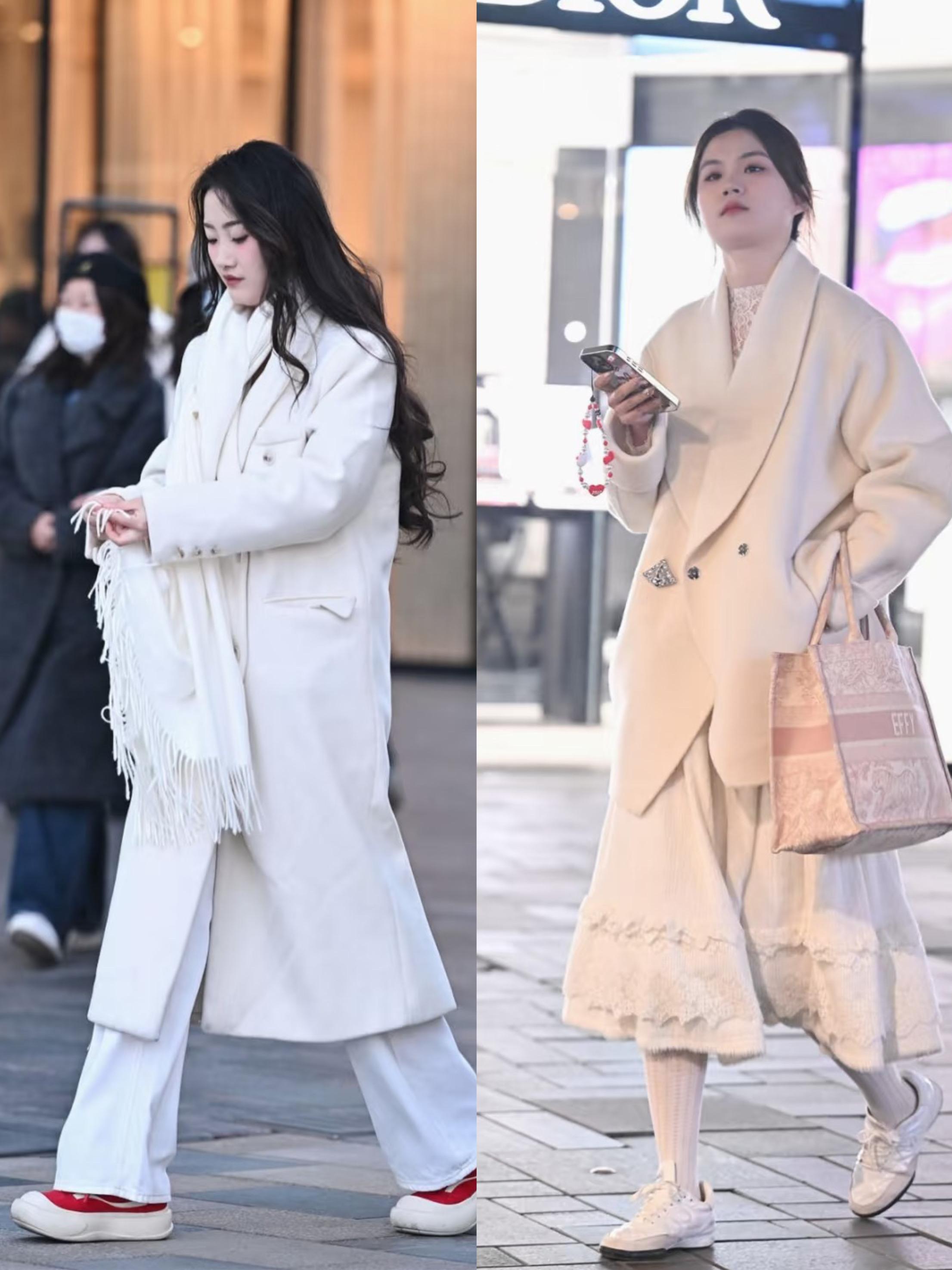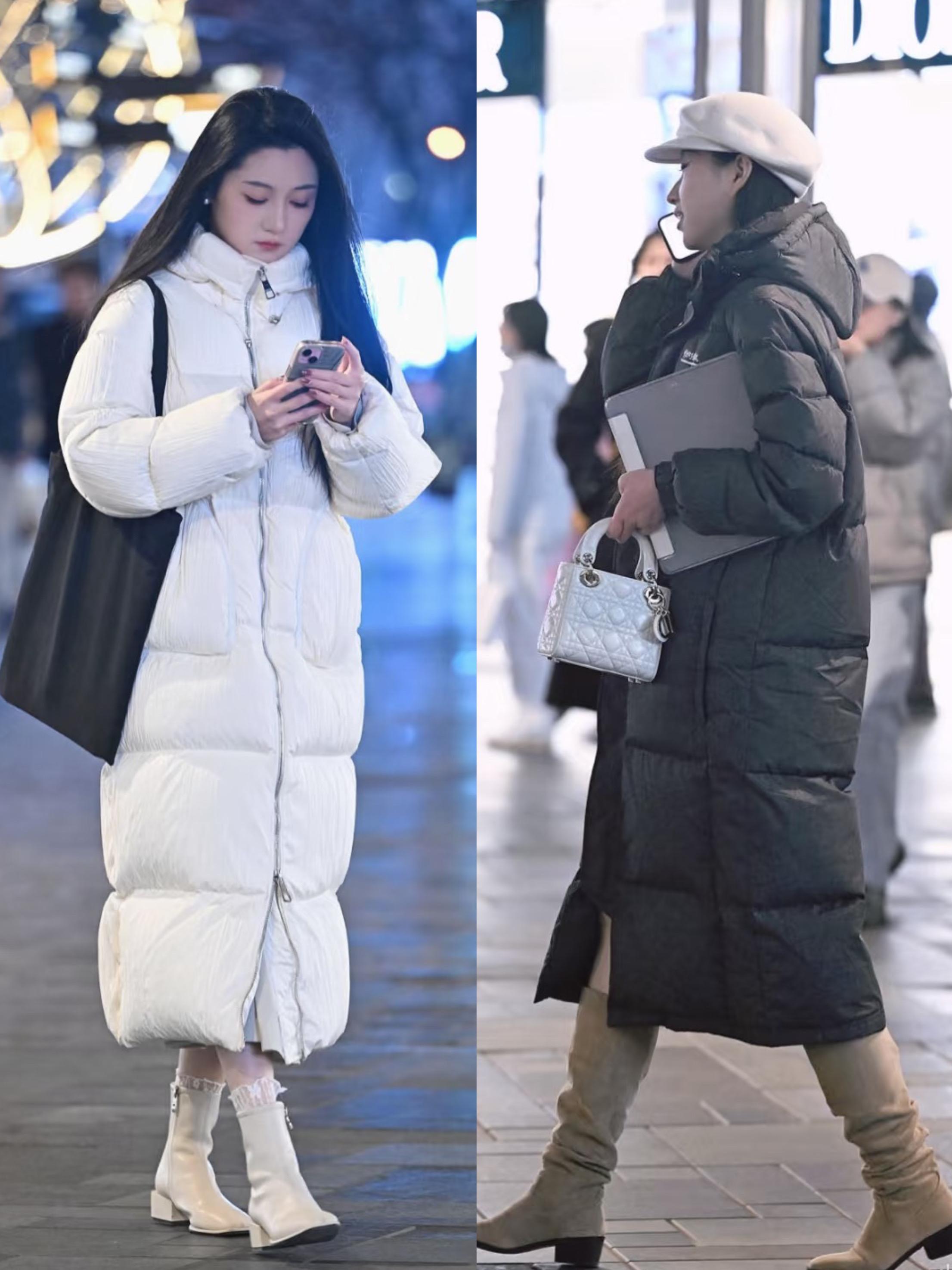 在寒冷的北方地區,我們的穿搭一定要注意保暖禦寒。北京街拍的穿搭,長款羽絨服也是保暖神器。