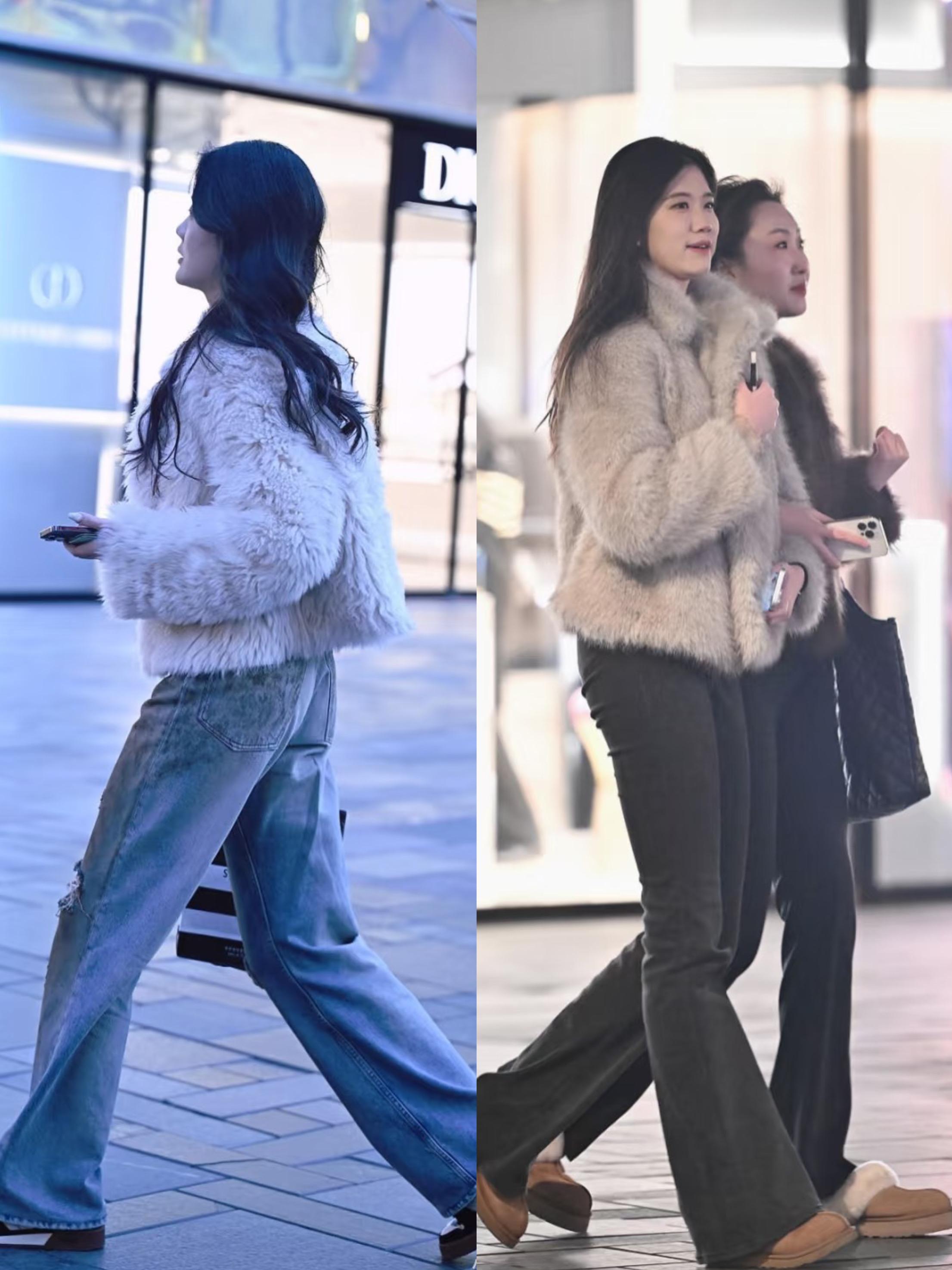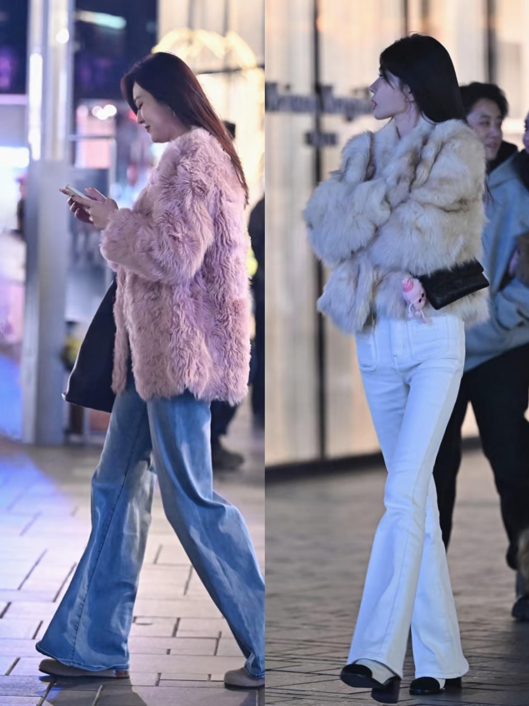 看北京街拍才發現,“皮草外套+牛仔褲”,也是一種很絕妙的搭配。尤其是短款皮草外套配高腰的直筒牛仔褲,時髦年輕、還顯腿長。