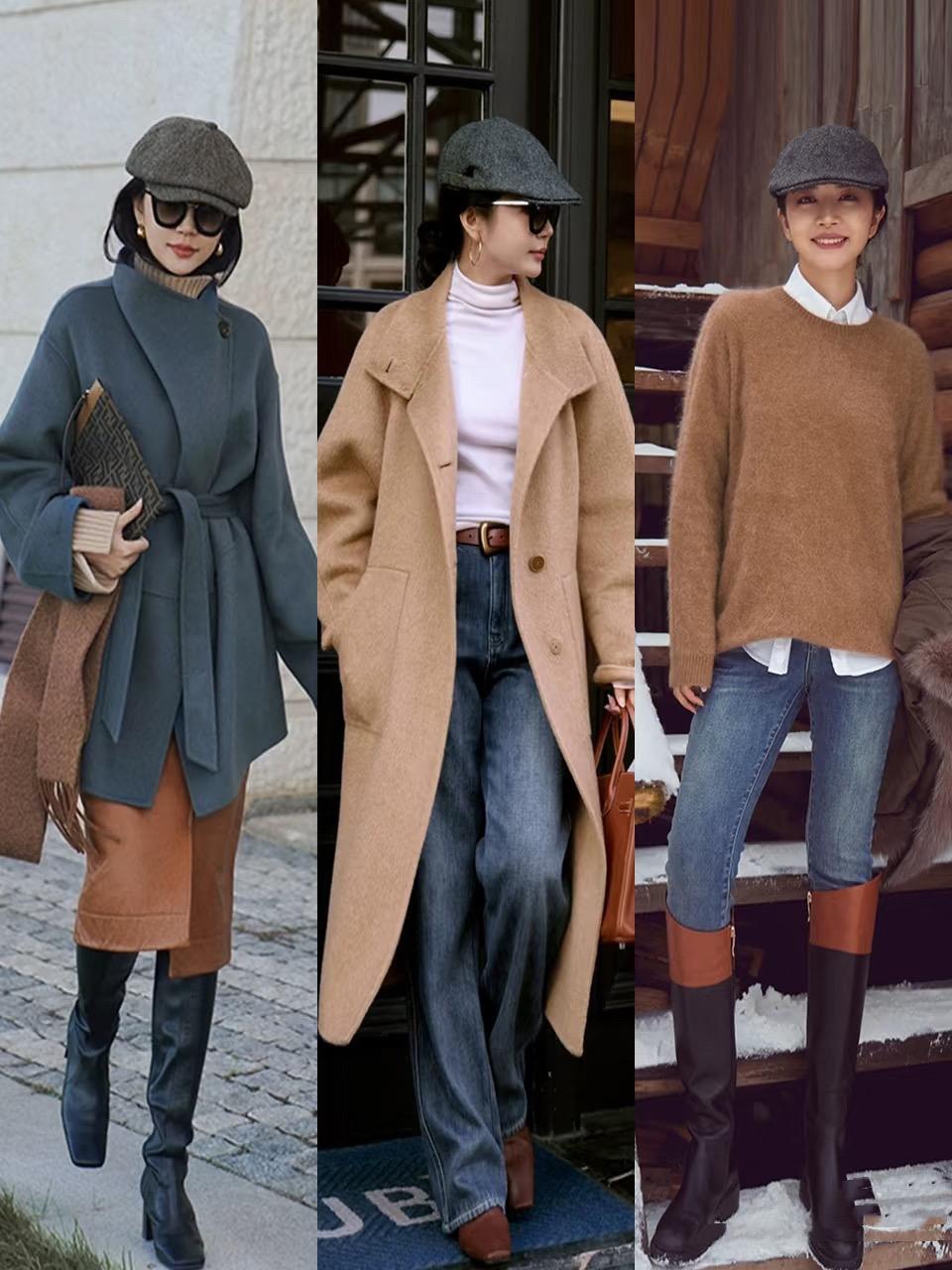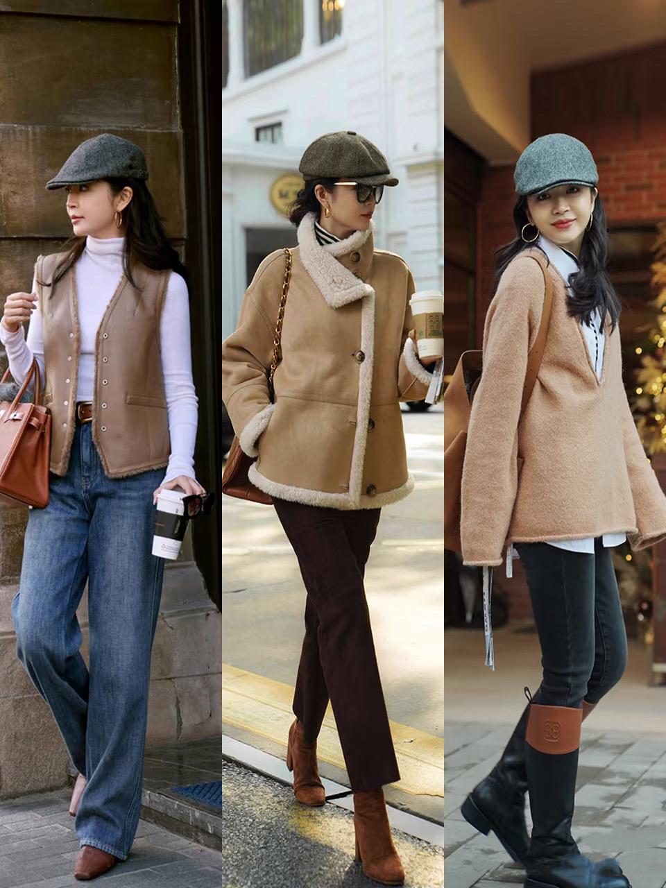 最外層的話,一定是厚實防風、有相對挺闊的外套了。毛呢大衣、羽絨服、毛絨外套,都是特別實用的。